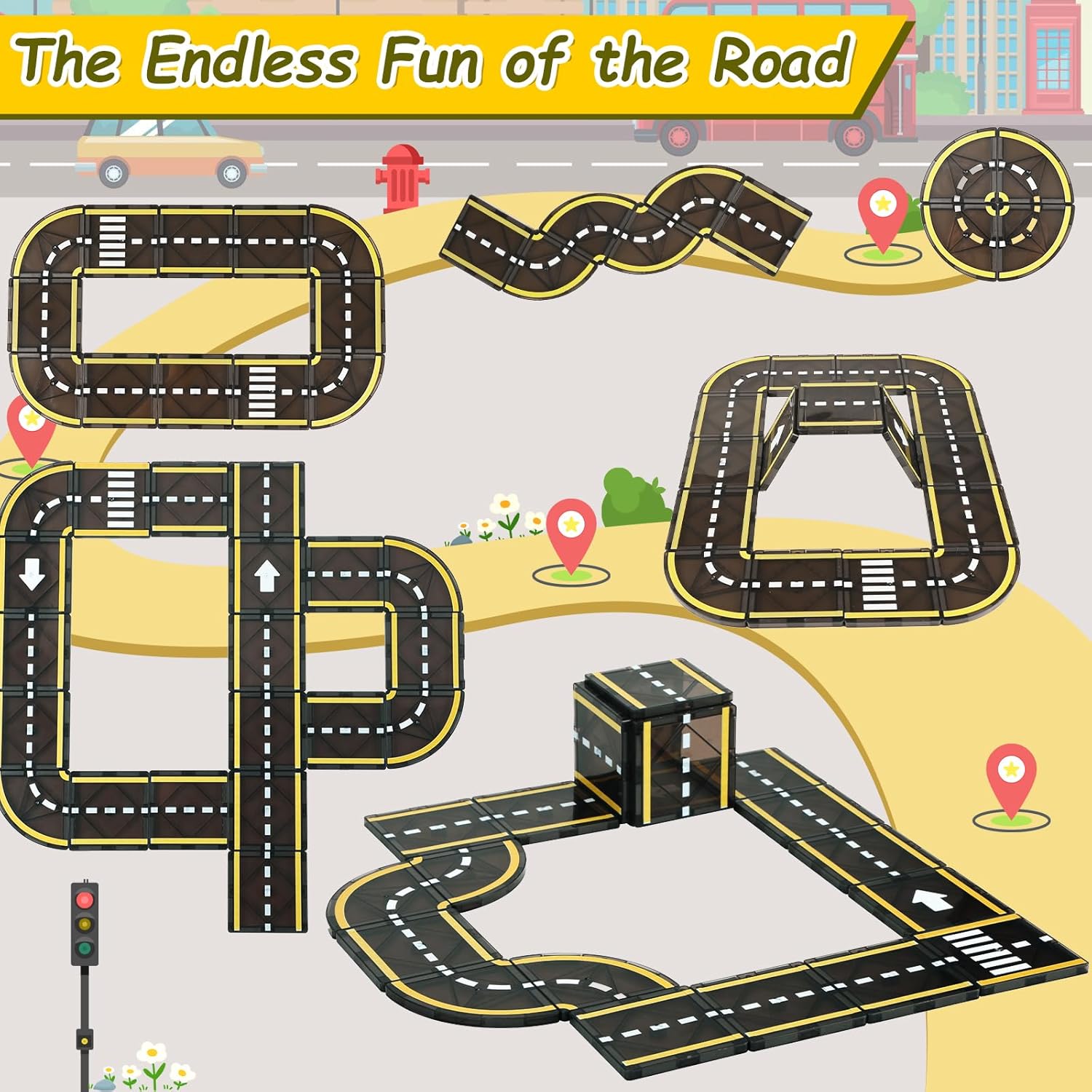 - Encourage children to build creatively with our magnetic tile road building set! This block set can be used as an expansion pack to connect with existing magnetic tiles. The set contains only road elements, So you don't have to worry about other accessories you don't want.Children can keep exploring new road designs and building plans.