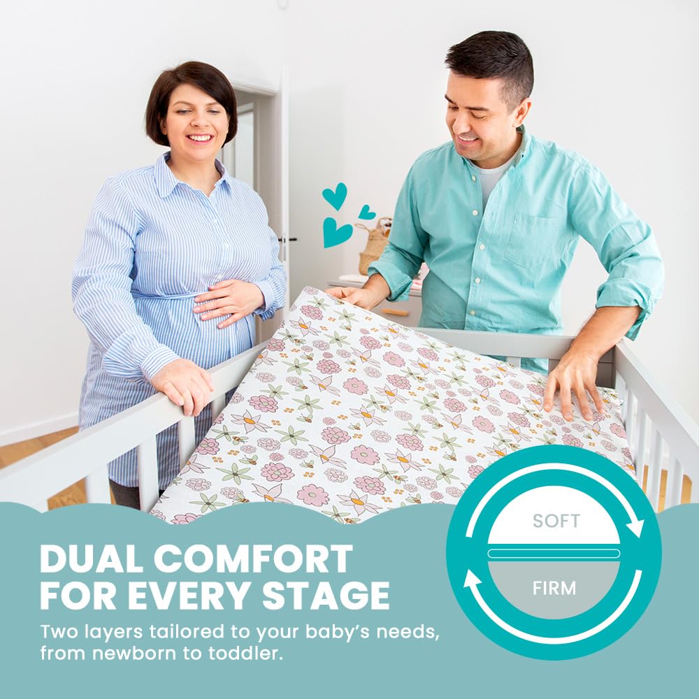- Durable & Lightweight for Everyday Use: Designed for long-lasting use, this baby bed mattress is lightweight, portable, and ideal for mini cribs or toddler beds, giving your child comfort on the go.