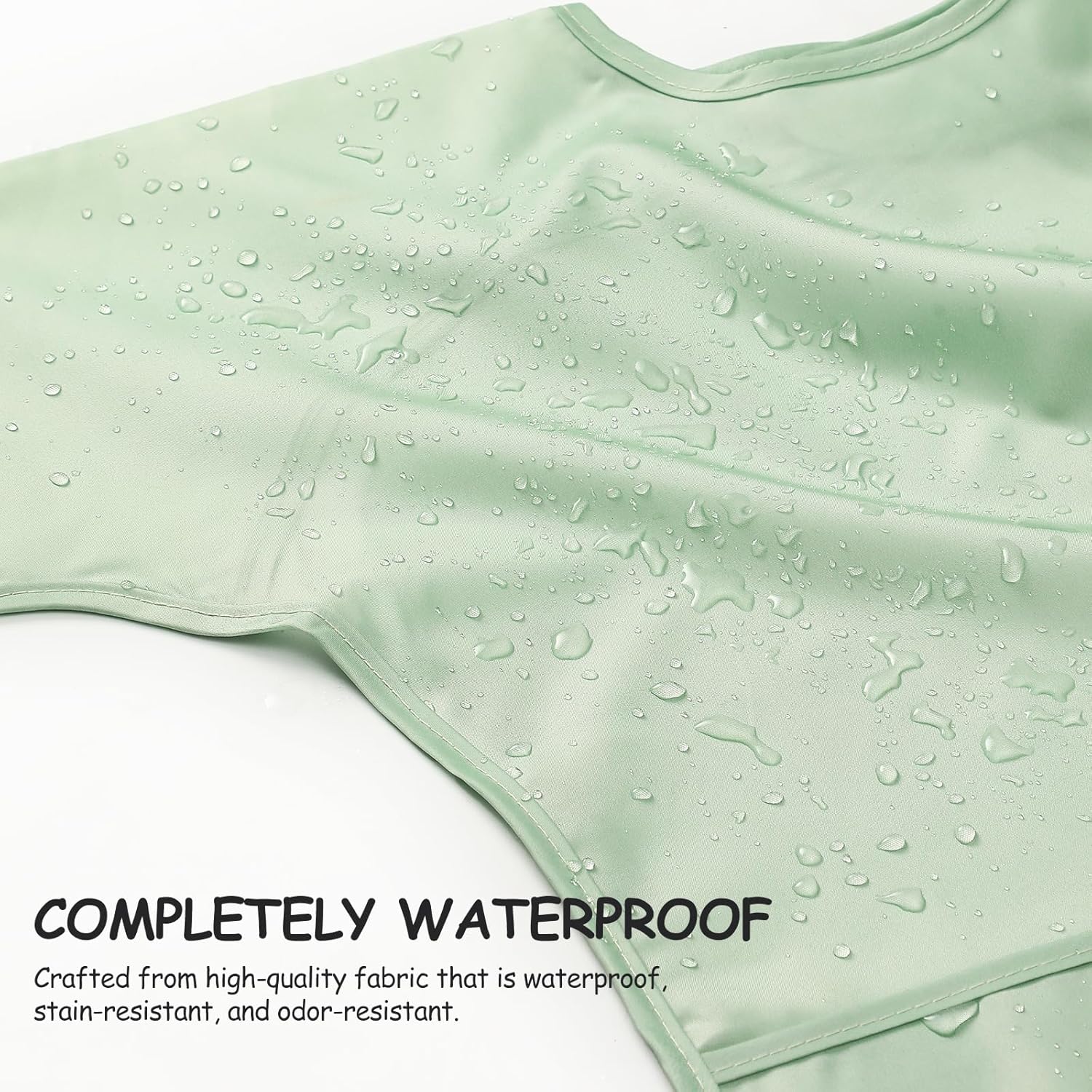 - Completely Waterproof - Crafted from premium waterproof polyester fiber and an EVA waterproof layer, this long-sleeve bib is entirely waterproof. It's free from lead, PVC, BPA, phthalates, and vinyl, ensuring safety and peace of mind.