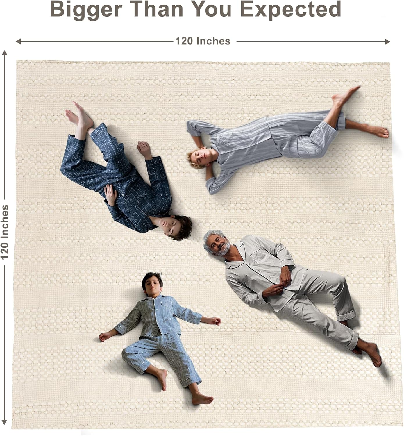 PHF 100% Cotton Waffle Blanket Oversized King 120"x120", Lightweight Breathable Extra Large 10'x10' Summer Blankets for Bed, Giant Big Luxury Aesthetic Woven Bedding for Home Decor, Undyed