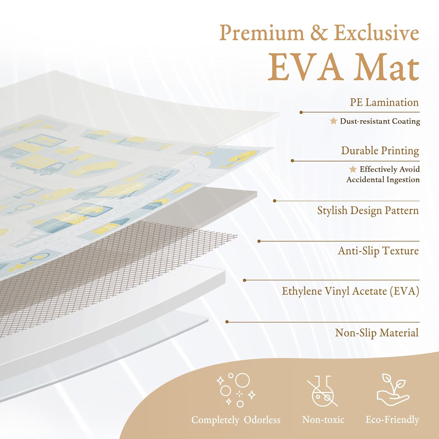 - 【Made from Safe Materials】Made from durable, shock-absorbing, odorless, and non-toxic EVA foam, our mats ensure safety and comfort. Using a unique printing method, it effectively addresses issues like sun fading and peeling that other brands often encounter, prevents small pieces from breaking off and being accidentally swallowed by babies, and enhances overall durability. With zero-benzene technology, it eliminates toxic odors found in many commercial products, ensuring non-toxic and safe floor mats.