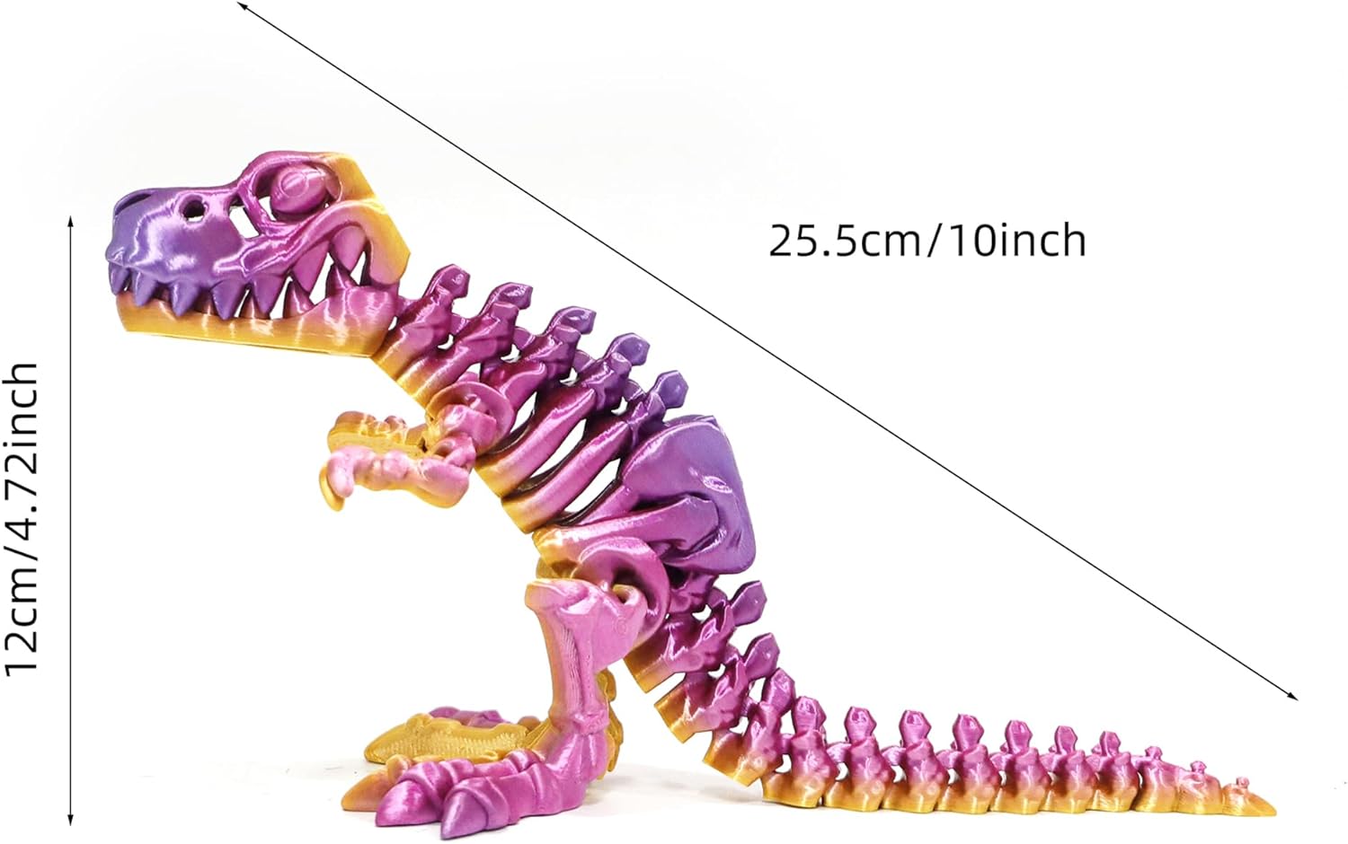 Flavery 3D Printed Dinosaur with Bones - 10 inch 3D Printed Dragon Fidget Toys, Flexible T-Rex Skeleton with Bones, Birthday Gift, Desk Executive Toy- (Rainbow)
