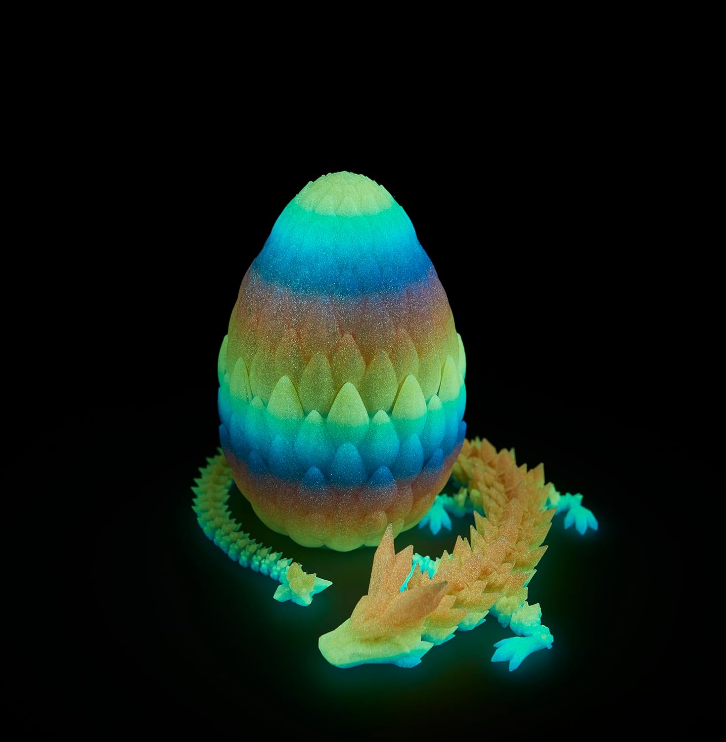 3D Printed Dragon Egg, 15 inchs Rainbow Luminous Dragon Toy,Articulated Crystal Dragon,Glow in Dark Fidget.Cool