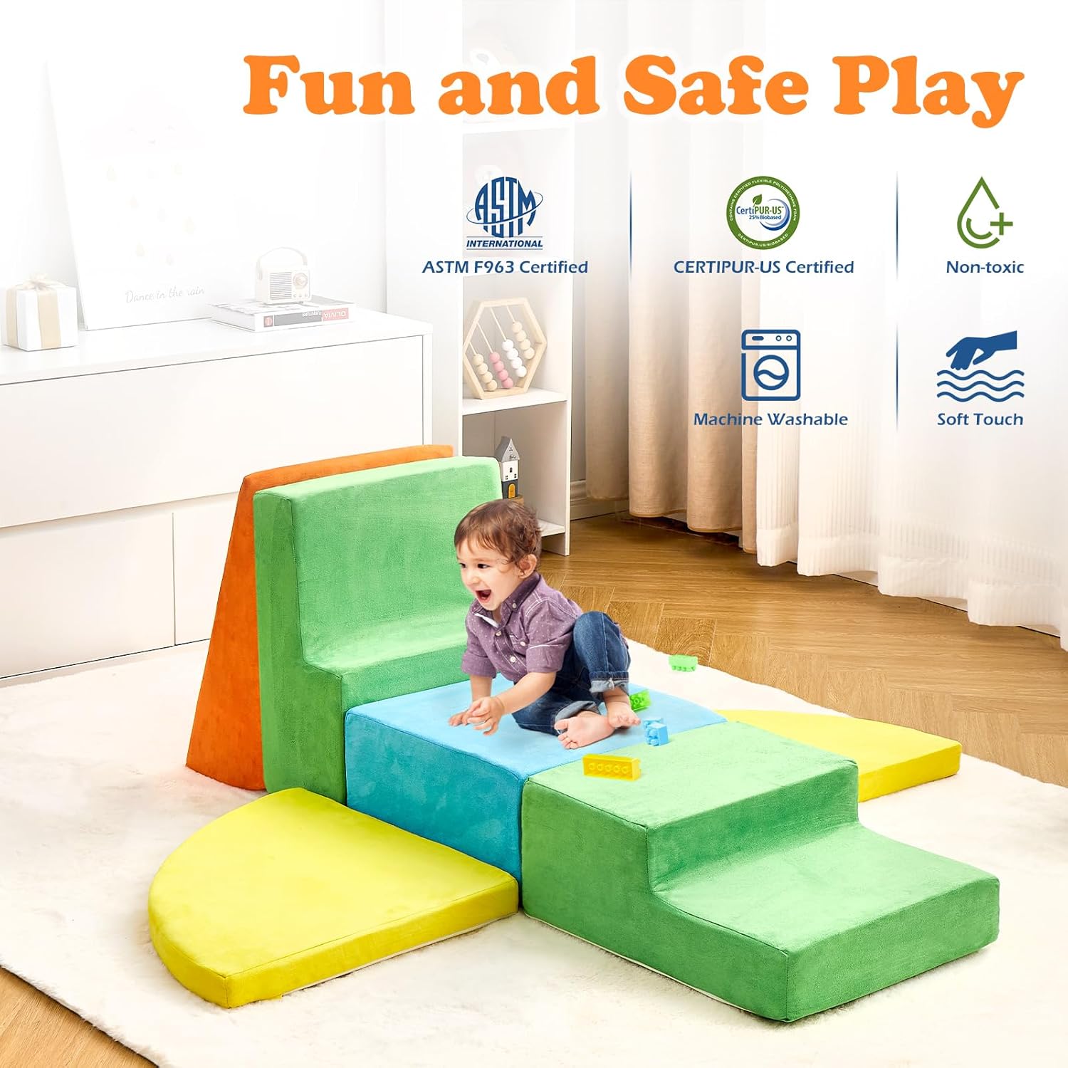 - 【Safe&Fun to Play】: Our climbing blocks for toddlers 1-3 are made from non-toxic and odorless fabric. Designed with hidden zippers to prevent scratching on children's soft skin, our blocks provide a reassuring and safe environment for play. With a focus on safety, our blocks are built without hard structures or sharp edges to protect children from bumps and injuries.Your child can safely play, toddle, and roll on this climbing toy that offers a soft and supportive surface, providing peace of mind for parents.