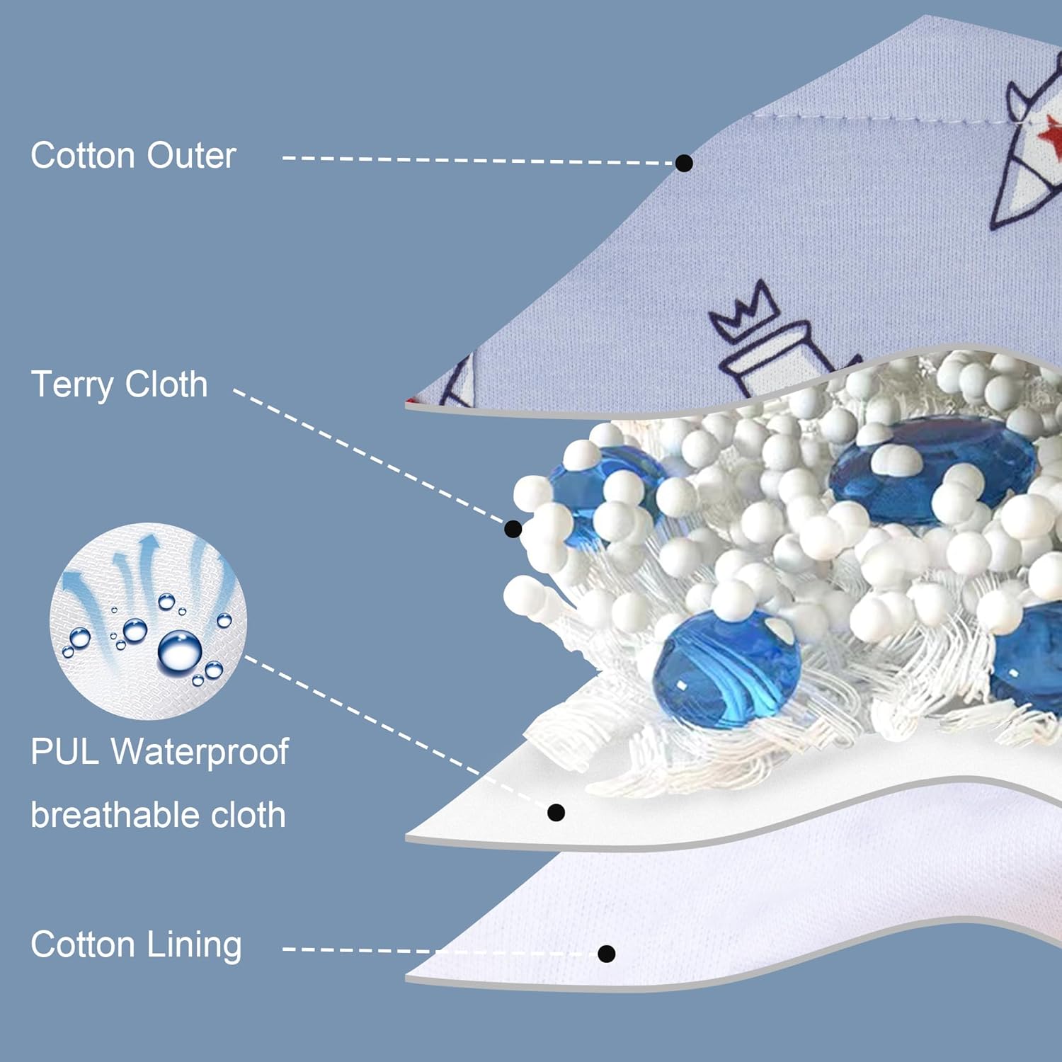 - Premium Quality and Innovation: Our potty training underwear for boys is crafted with eco-friendly, organic materials, including a 100% cotton outer layer and a blend of cotton, and TPU for the inner layers. This combination ensures maximum softness, high urine absorption, and gentle care for sensitive skin, reducing the risk of diaper rash. These underpants are machine-washable, and reusable.