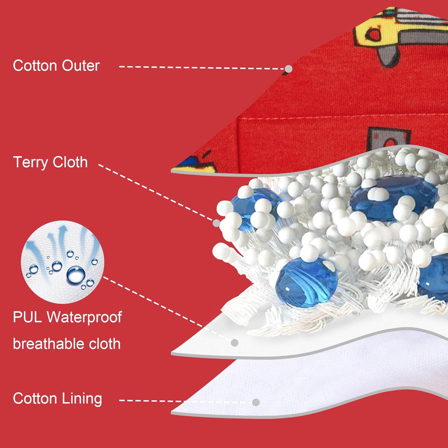 • Premium Quality and Innovation: Our potty training underwear for boys is crafted with eco-friendly, organic materials, including a 100% cotton outer layer and a blend of cotton, and TPU for the inner layers. This combination ensures maximum softness, high urine absorption, and gentle care for sensitive skin, reducing the risk of diaper rash. These underpants are machine-washable, and reusable.