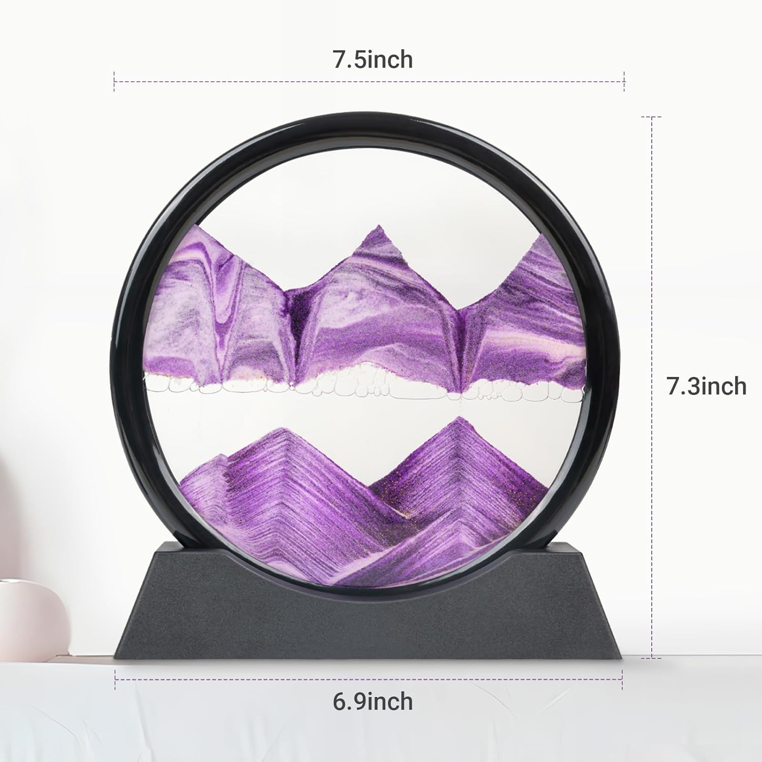 Drakswet Moving Sand Art Liquid Motion,Moving Sand Art Picture-3D Deep Sea Sandscape,Round Glass Frame Display Flowing Sand Relaxing Desktop Home Office Work Decor (Purple)