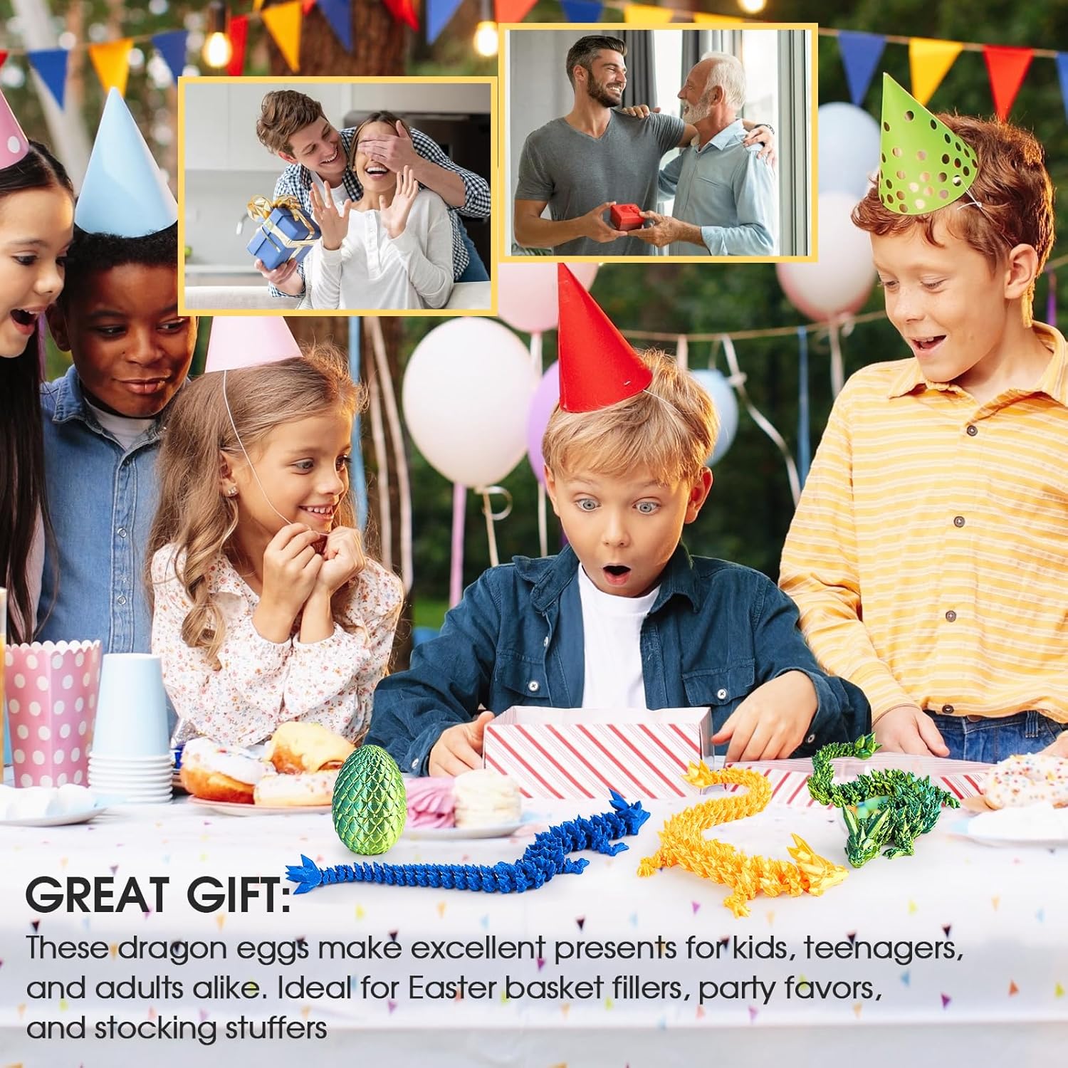 - 【Fantasy Dragon Myth】: This articulated dragon fidget toy action figure resembles the legendary Eastern dragon or the divine creature from cartoons. Available in various colors, each symbolizing unique meanings and strengths, these 3d printed dragon egg figurines also serve as fantastic stress-relief toys. The intricate lifelike design and faithfully recreated forms of ancient mythical beasts evoke a dreamy and captivating sensation, igniting boundless imagination.