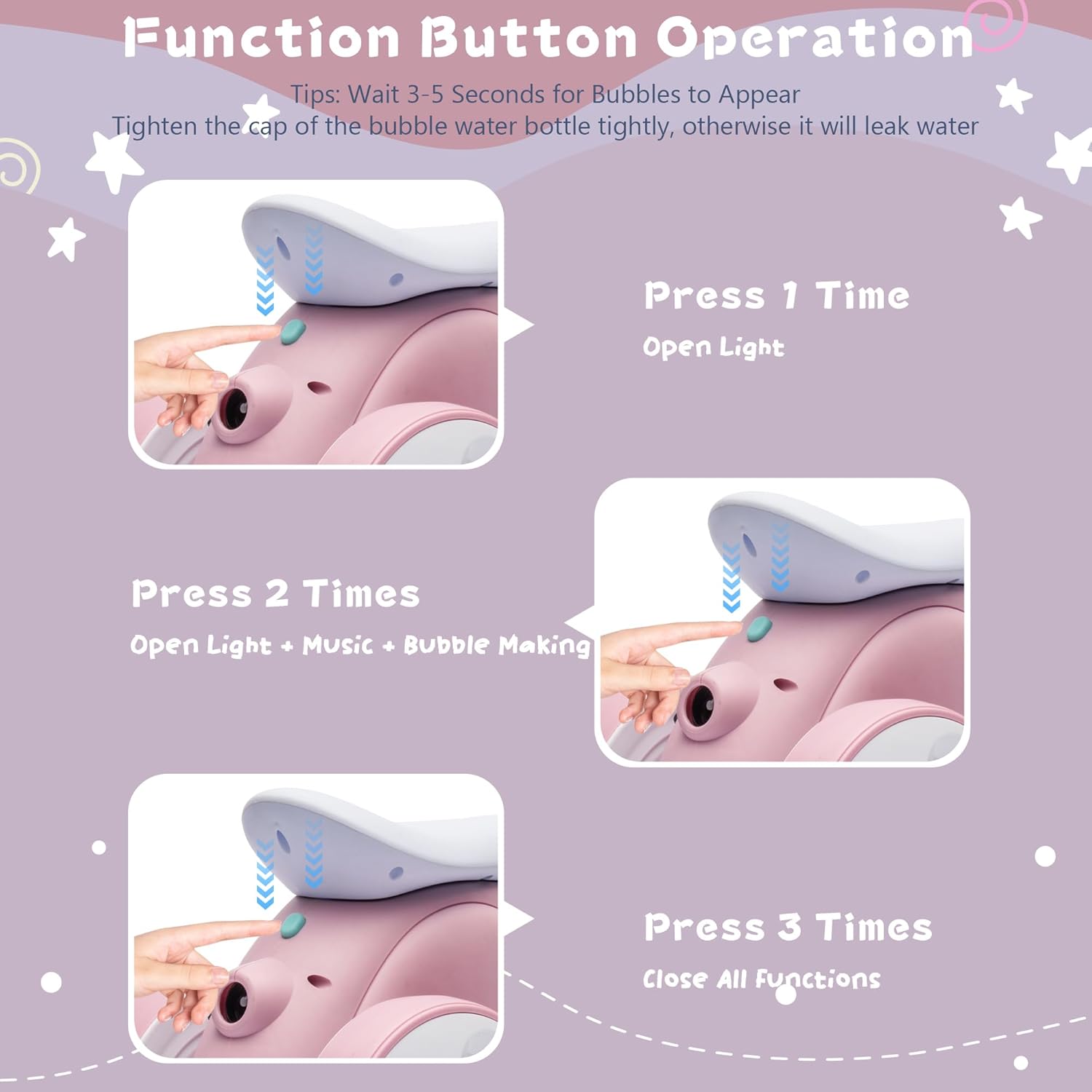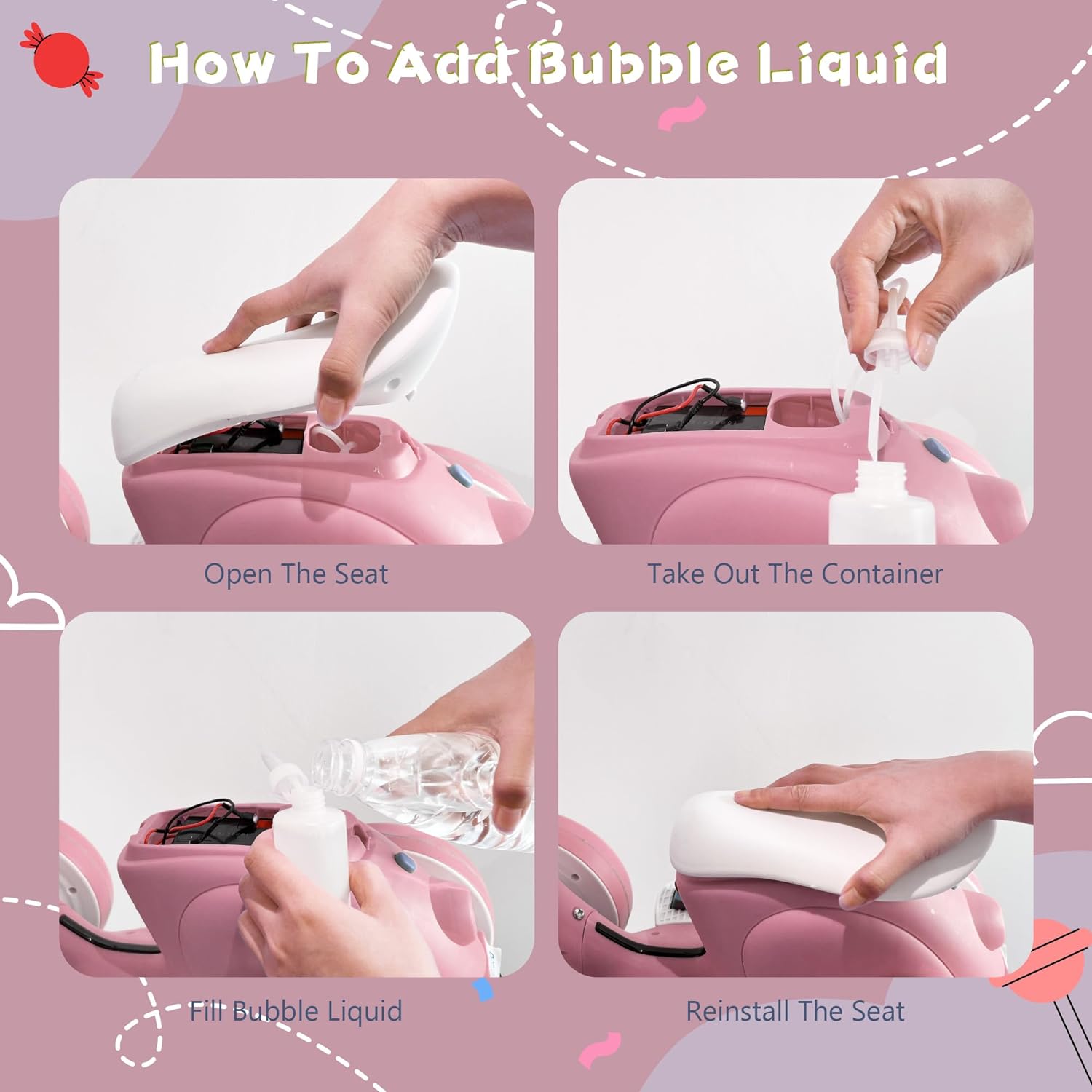 - Comfortable children's balanced motorcycle with remote control and bubble machine: Our riding toy features anti slip handles designed specifically for small hands, seats that conform to human body structure, making it more comfortable for children to sit on. The four wheels can ride smoothly on various surfaces, making it perfect for indoor and outdoor activities.
