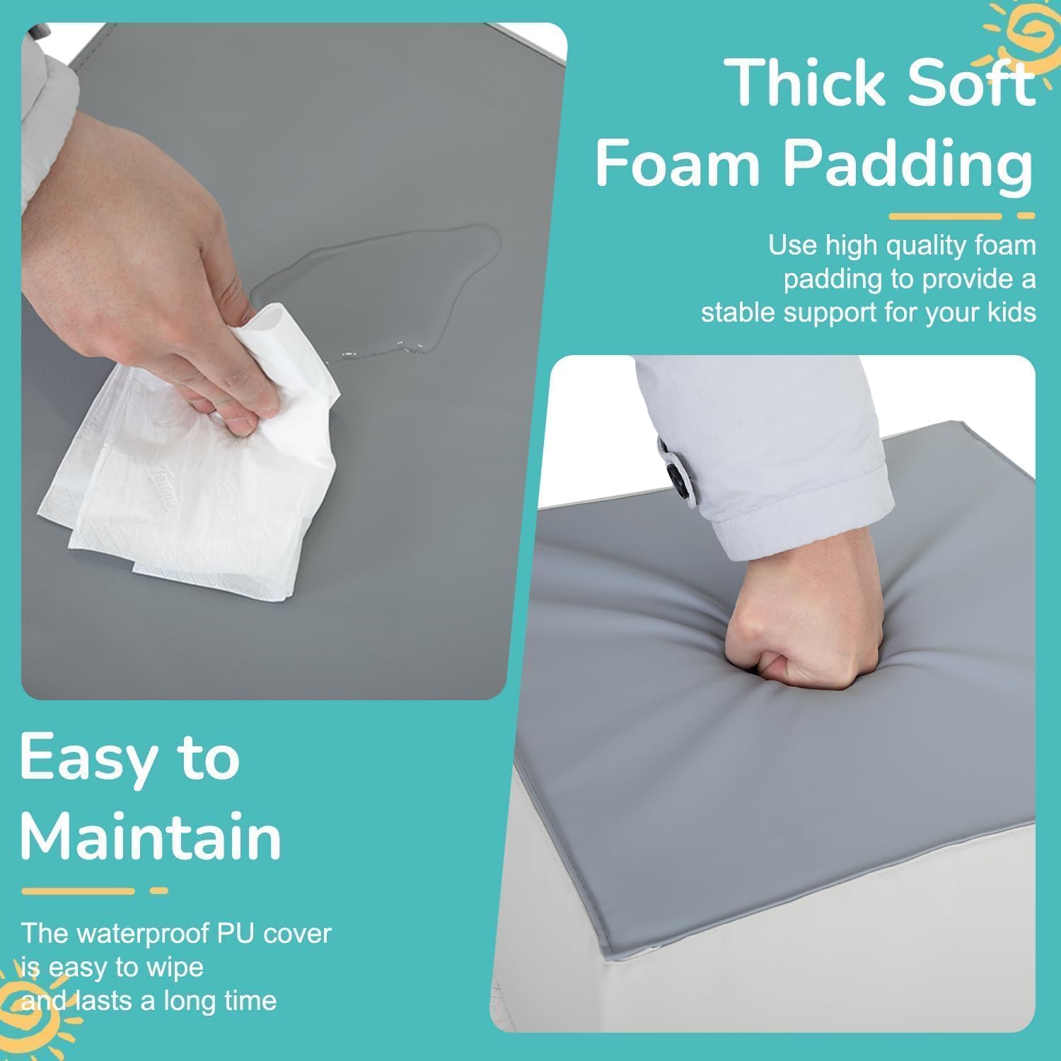 - EASY TO MAINTAIN:Children's climbing toys are resistant to stains and wear. This is mainly due to the easy to clean vinyl surface of the baby climbing toy, which can be directly wiped clean with a damp cloth. A simple cleaning can produce a clean, soft children's climbing toy.