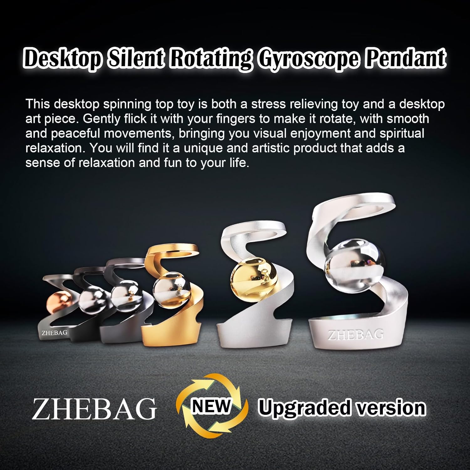 - 【Innovative Design】The adult office desk toy metal ball is fixed on the S shaped aluminum alloy body with screws. Spin the Adult Desk Fidget toys with just the right amount of force and skill and you can see a mesmerizing optical illusion effect where the metal ball inside feels like it's floating inside the main body of the Executive Spin Desk Toy (Don't rotate the tabletop toy too hard, as this will better reflect the suspension of the metal ball and also prevent it from tipping over).