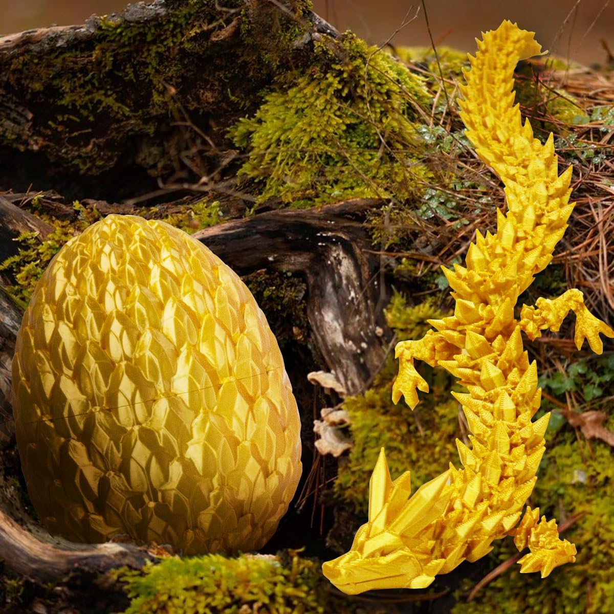 3D Printed Dragon in Egg, Beautiful Flexible Crystal Dragon, Gifts for Adults and Kids (Gold)
