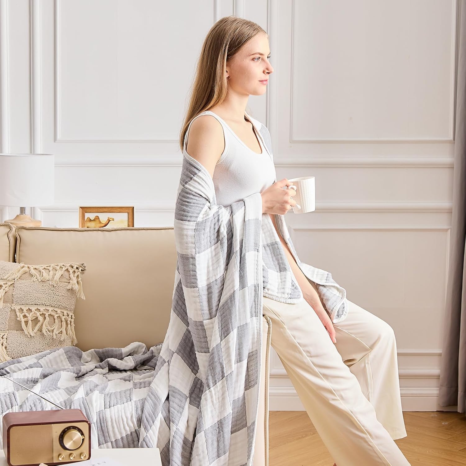- Softness and Cooling: This checkered cotton blanket is made from 70% cotton and 30% rayon derived from bamboo, the perfect combination of softness and cool feeling . It will become your go-to blaneket at once. Perfect Gift for birthdays, housewarming, Mother's Day and other. NOT SUITABLE for PETS USE.