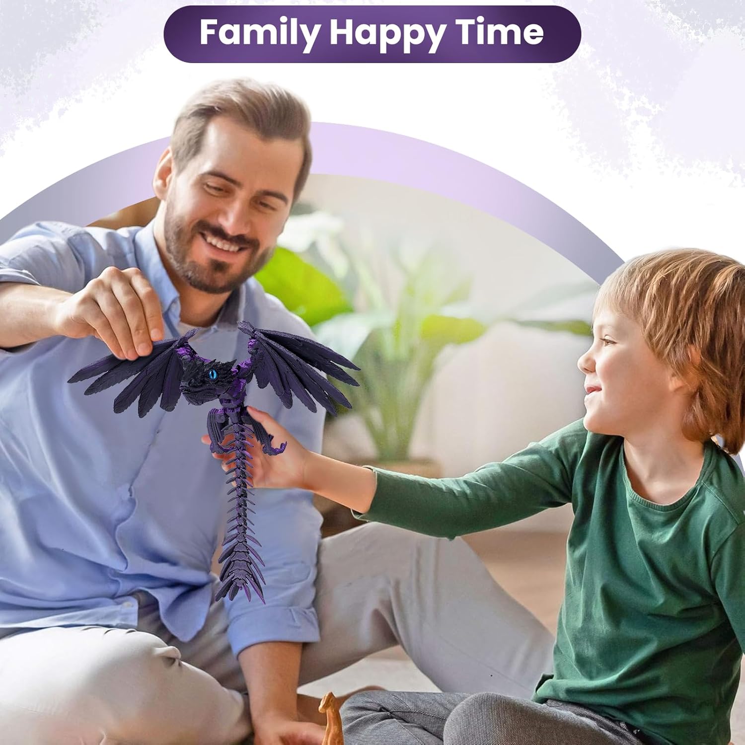 3D Printed Dragon with Wings,3D Printed Animals Toy,3D Printed Flexible Dragons,Crystal Dragon Fidget Toys,Full Articulated Dragon Crystal Dragon (Purple Black)