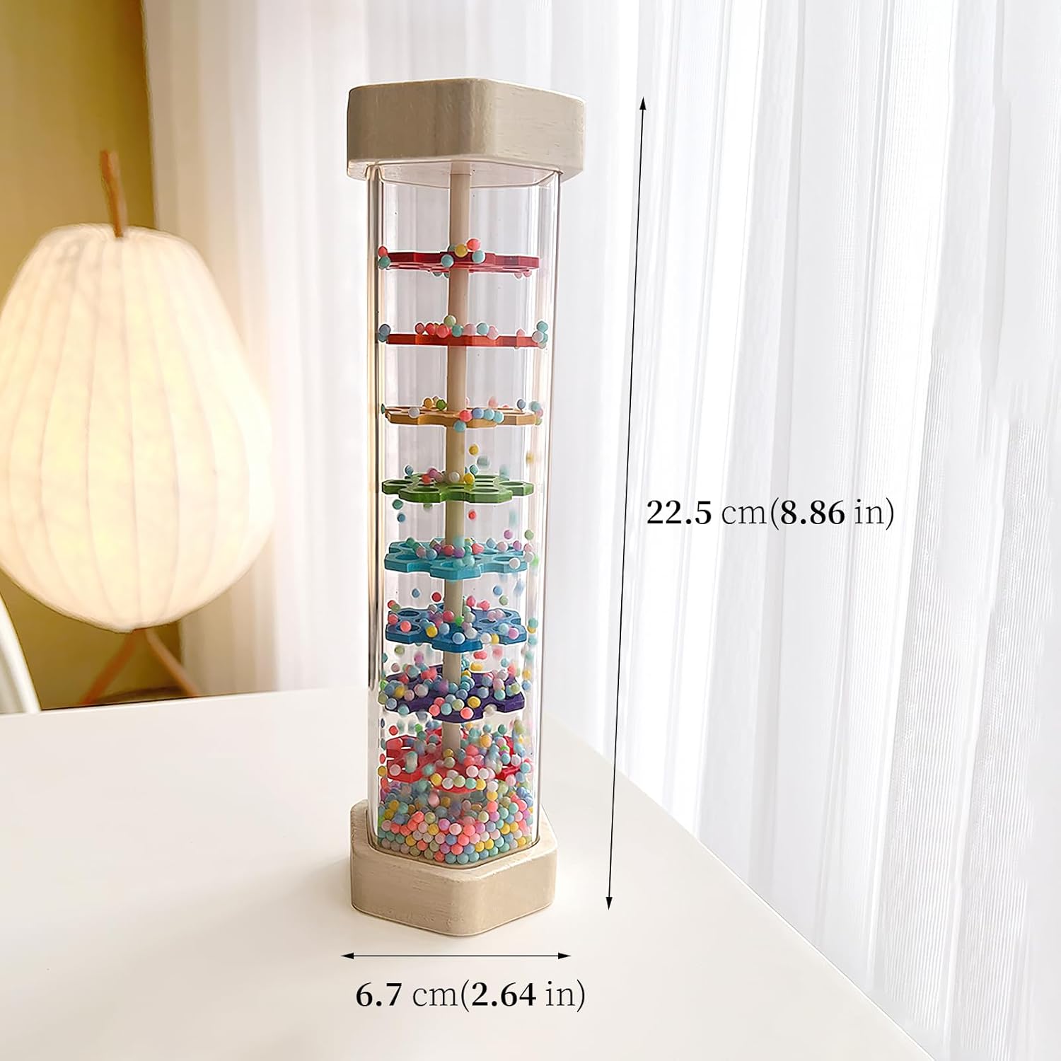 - Toddler Musical Instruments: The sound produced by this well-made and pretty rainmaker is not too loud but pleasant and the sound quality is very nice. The height of this rain stick is 8.86 inches, a bit longer than the 7.7 inches rain stick, which makes the sound last longer. Flip it over, shake it, or roll it up to enjoy the clear, gentle sound of rain. Wodi rain sticks calming, soothing, and captivating rain sounds make it a fun musical toy for babies, toddlers, and children