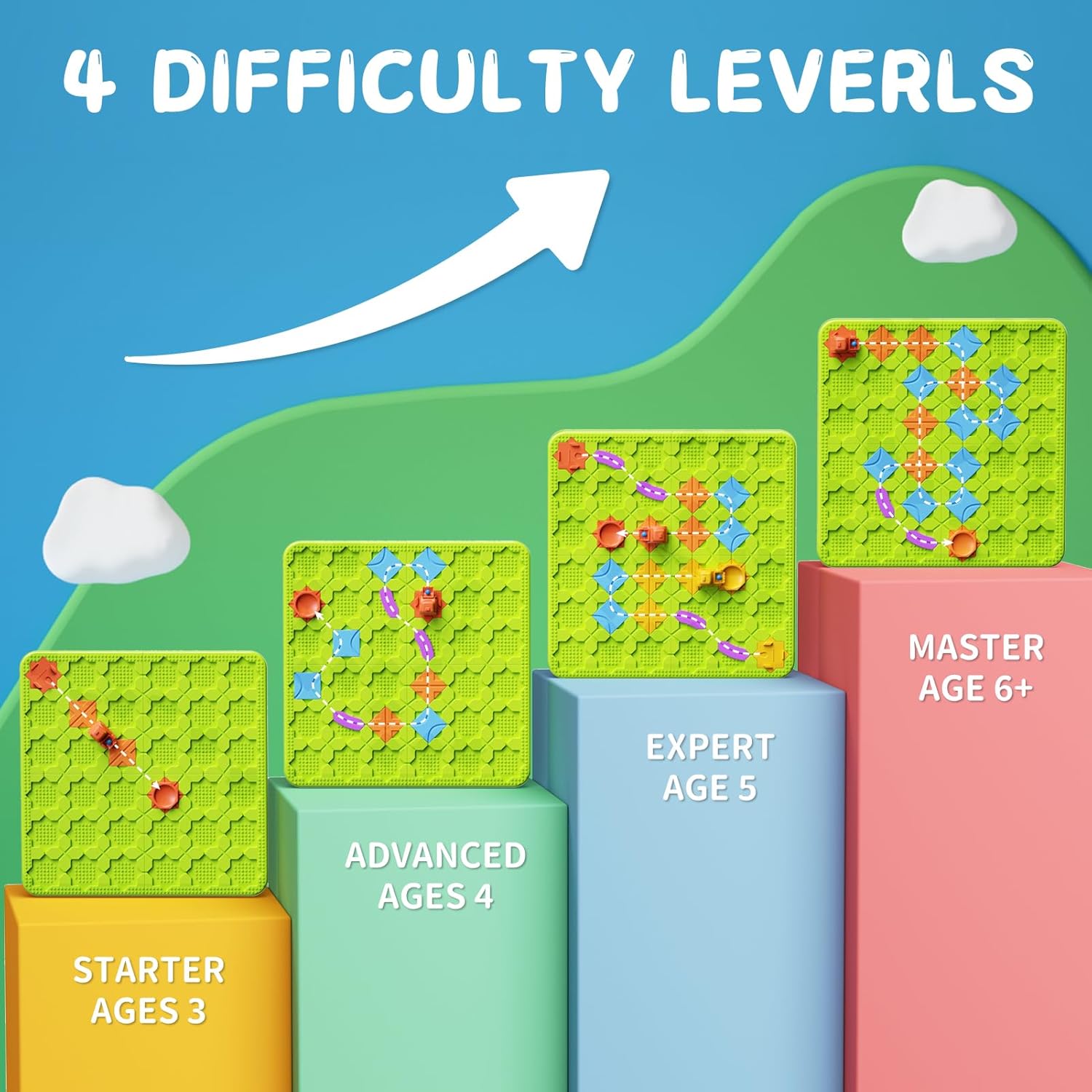 Brain Stem Activity Logic Kits, Board Teaser Games & Puzzles Toys with 200+ Challenges, 4 Difficulty Levels for Kids Ages 3-10, Educational Learning Maze Games for Toddlers