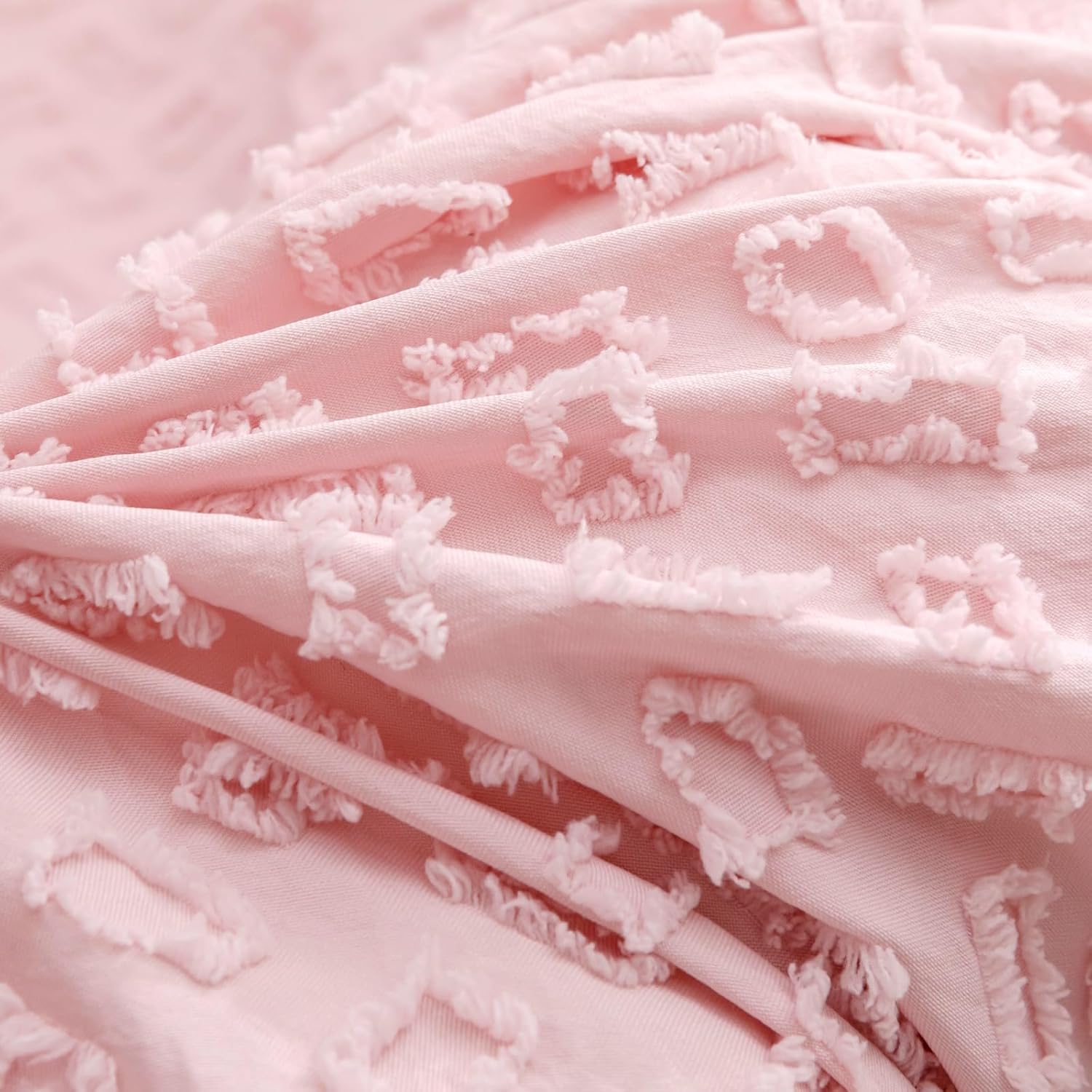 Cokouchyi 3 Piece Bedding Set for Boy Girls, Jacquard Tufted Geometric Crib Set, Includes Crib Skirt, Blanket and Sheet, Baby Bedding, Pink