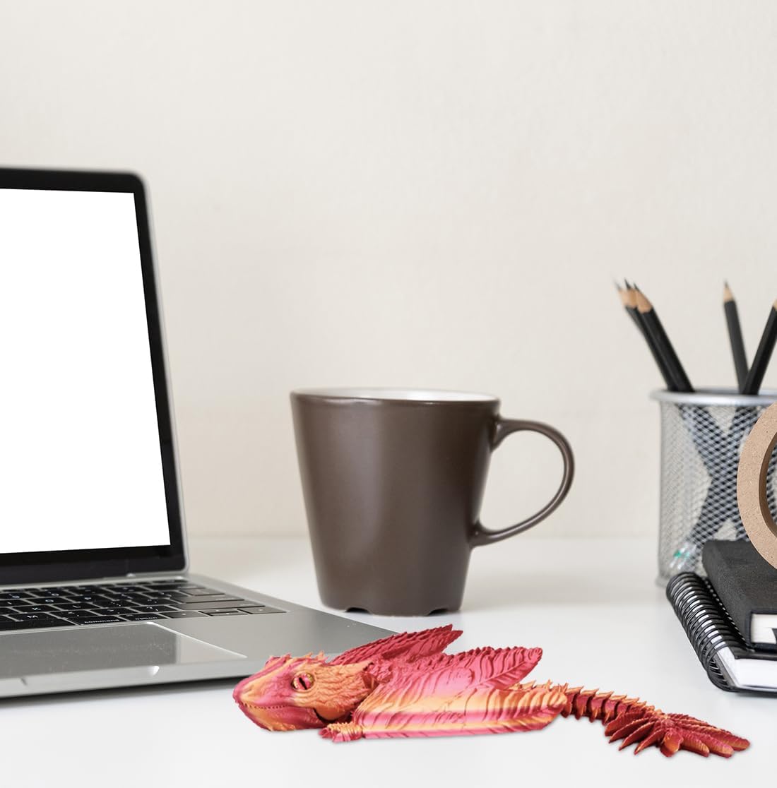 3D Printed Dragon with Wings 3D Printed Animals Articulated Dragon Fidget Dragon 3D Printed Toys Dragon Toy Desk Pets Home Office Decor (Orange)
