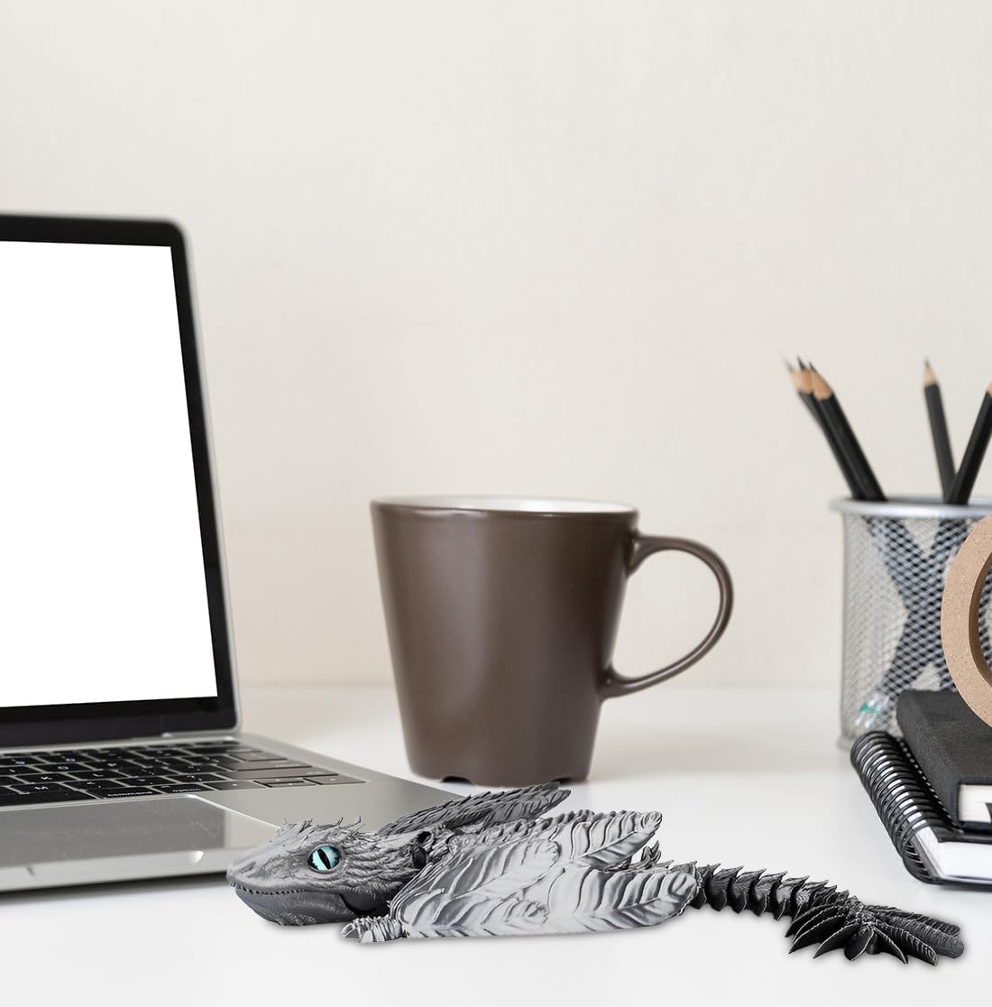 3D Printed Dragon with Wings 3D Printed Animals Articulated Dragon Fidget Dragon 3D Printed Toys Dragon Toy Desk Pets Home Office Decor (Sliver)