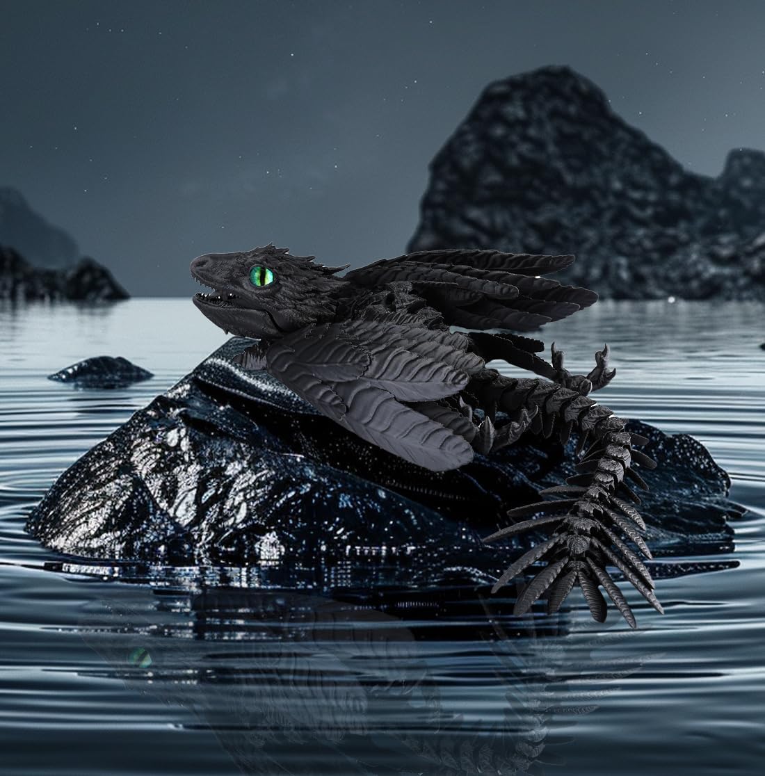 3D Printed Dragon with Wings 3D Printed Animals Articulated Dragon Fidget Dragon 3D Printed Toys Dragon Toy Desk Pets Home Office Decor (Black)