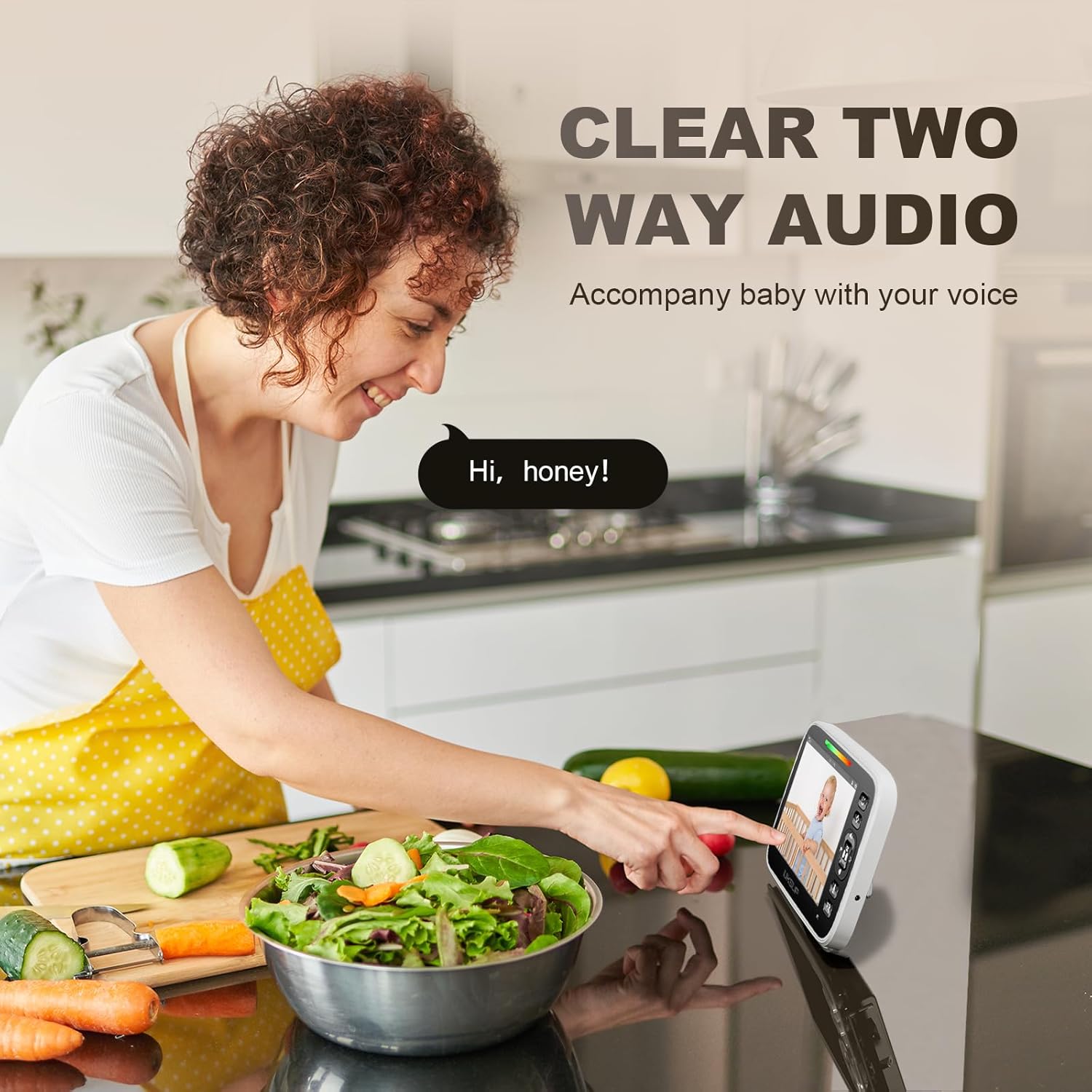 - Long-lasting battery & VOX function: The baby monitor camera is fitted with 3500 mAh rechargeable battery, giving you 30Hr of Battery Life for baby video and audio streaming in VOX Mode and 10-Hr With Screen On, allowing you to stay connected with your baby throughout the night. When the video baby monitor picks baby cries over VOX mode, the screen automatically turns on to virtually alert you on the welfare of your baby while saving on power