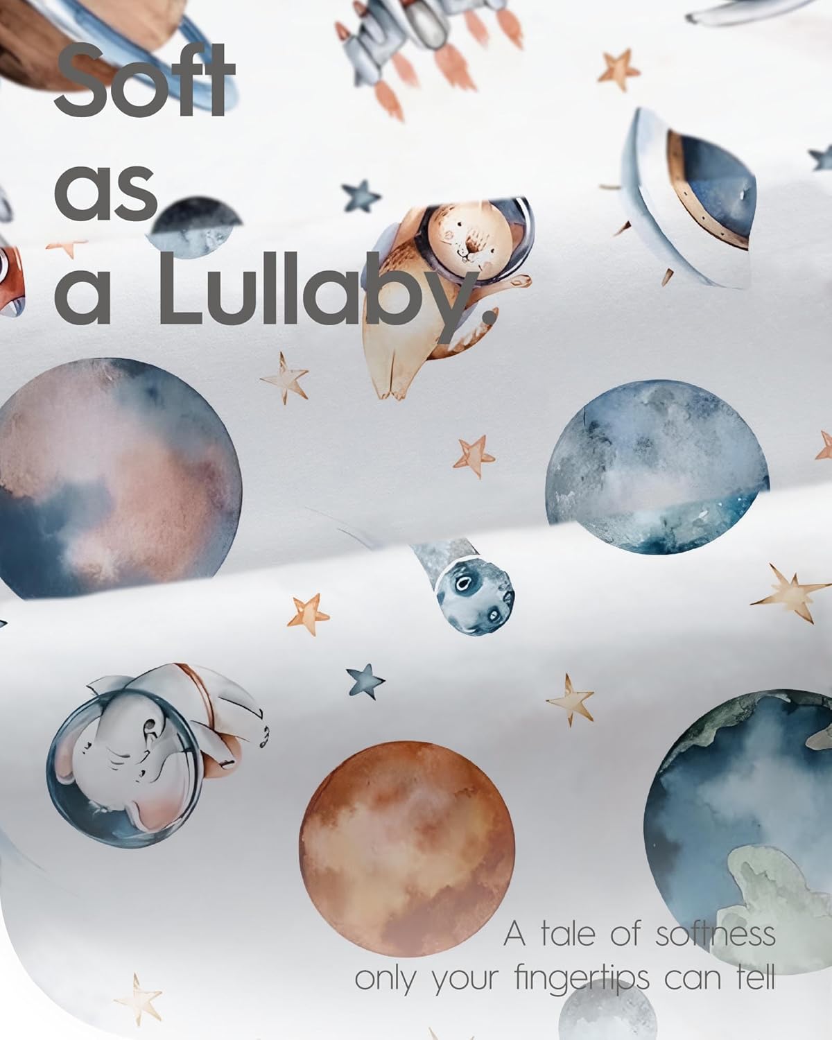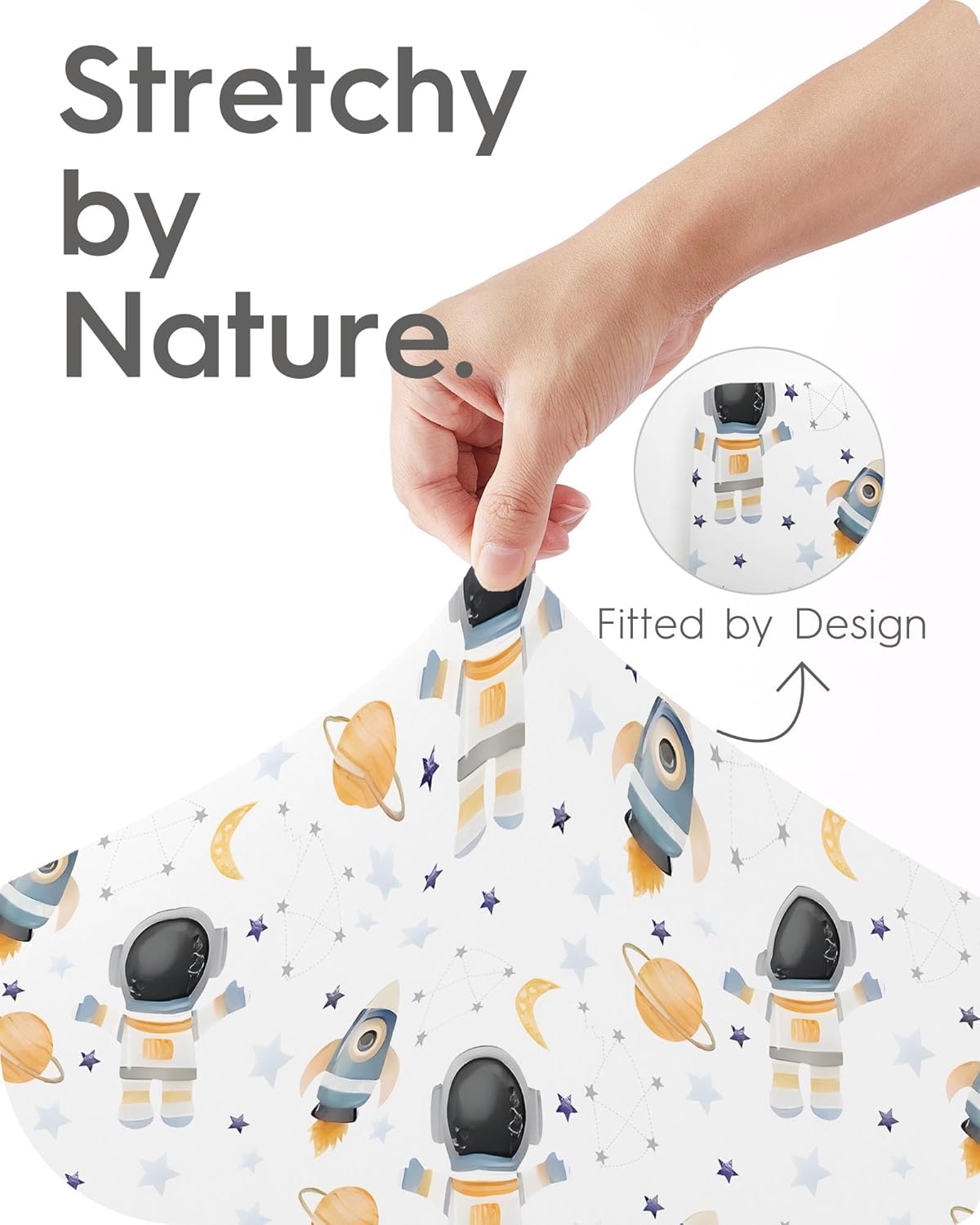 Graco Pack and Play Sheets Fitted, TotBasic Ultra Soft Mini Crib Sheets Boy, Neutral Pack N Play Mattress Sheets Hypoallergenic and Soothing, Premium Jersey Playrad Sheets, 2 Pack(Space Explorer)