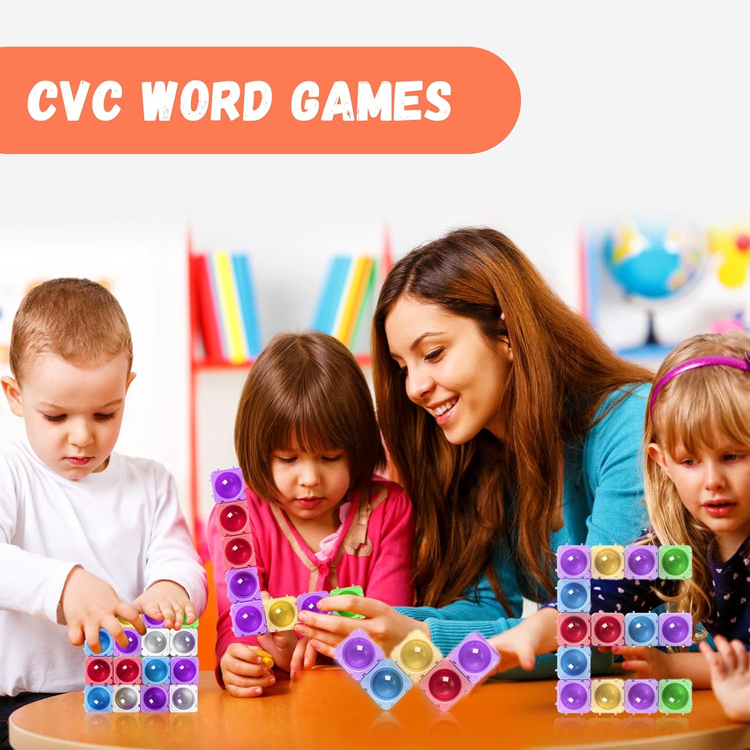 - [CVC Learning Resources] Can be used to teach or learn sight words and phonics. The student or kid has 3 pop its and sound out say cat. CCCAAATTT. As the kid says the /k/ sound, he/she can pop the first pop it, as kid do the short a, he/she can pop the second one and as kid do the t sound he/she pop the third one. Then he/she writes in front of the pop it the sound. Valuable for teaching phonics and spelling in a fun and interactive way for early education, preschool, kindergarten.