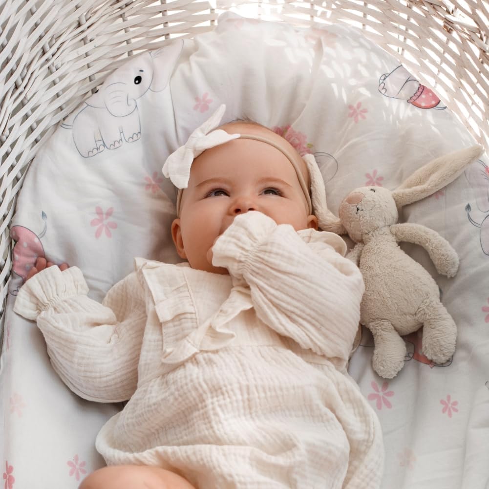 4 Pack Baby Girl Bassinet Sheets Set Soft Fitted Floral or Elephant Theme Baby Girl Mattress Covers Breathable Toddler Bed Sheets for Infant or Newborn Girls (Elephant, Bassinet Sheets)