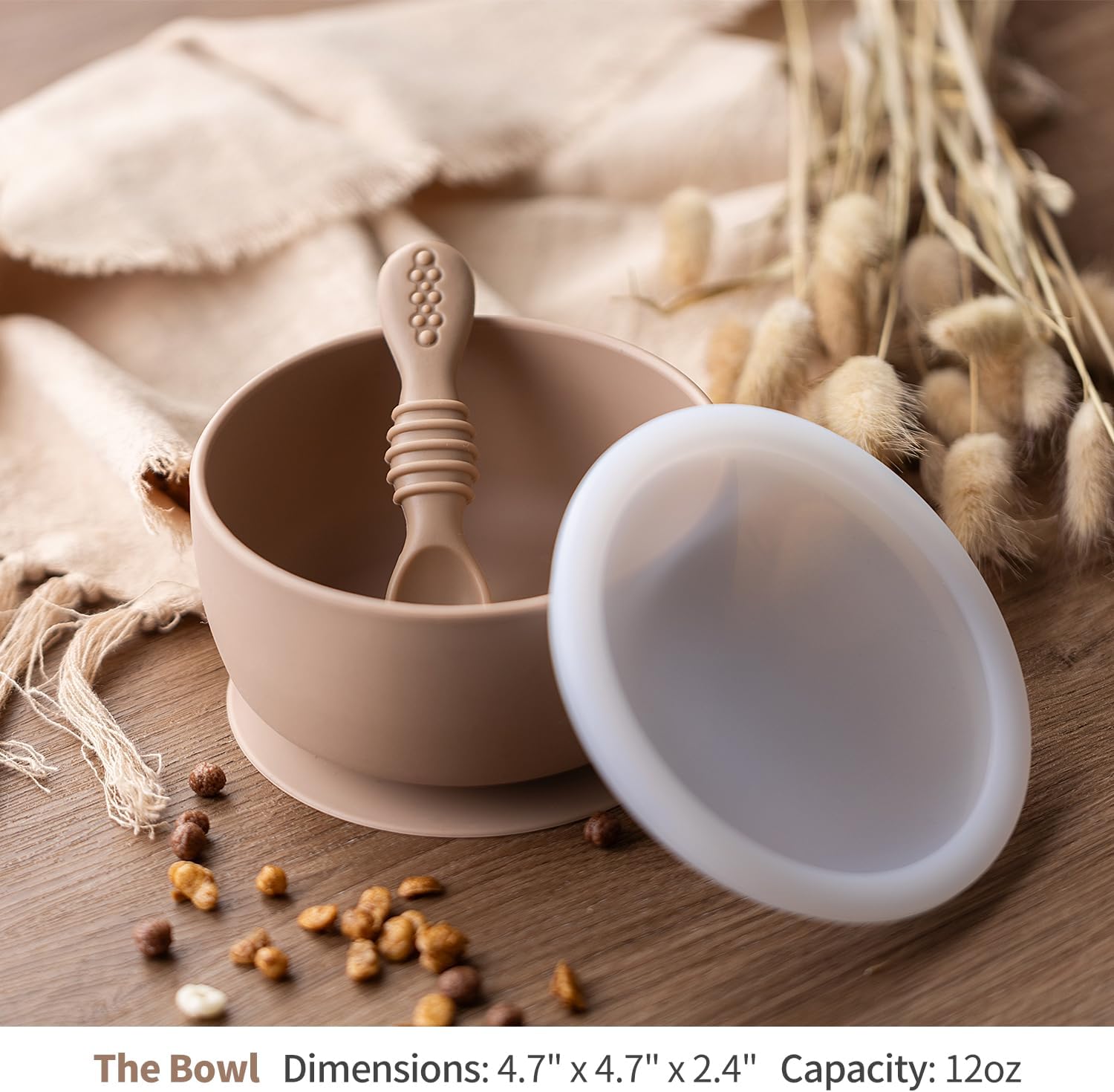 - Suction Works Great - With a generous capacity of 12oz, our bowl firmly sticks to where it's placed without sliding around, thanks to the base that creates a beautiful seal on smooth surfaces. To release, simply lift the tab.
