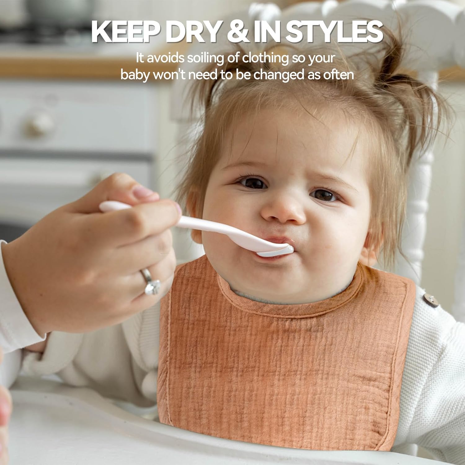 - Set of 8 Unisex Colors: Our toddler muslin bibs for boys and girls are carefully selected neutral colors, suitable for both boys and girls, and can be easily matched with any outfit. You can choose newborn bibs that suit your baby's outfit for the day.