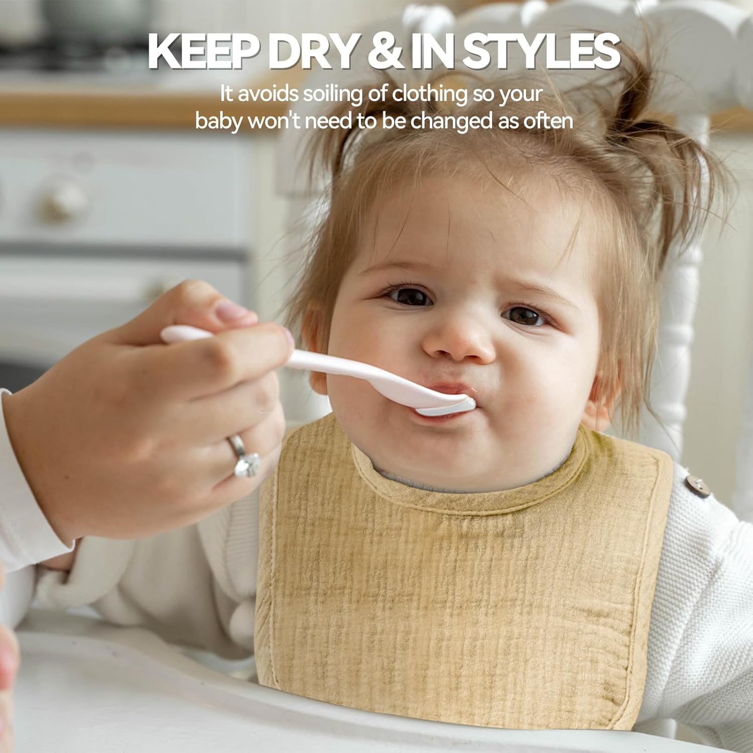- Set of 8 Unisex Colors: Our toddler muslin bibs for boys and girls are carefully selected neutral colors, suitable for both boys and girls, and can be easily matched with any outfit. You can choose newborn bibs that suit your baby's outfit for the day.