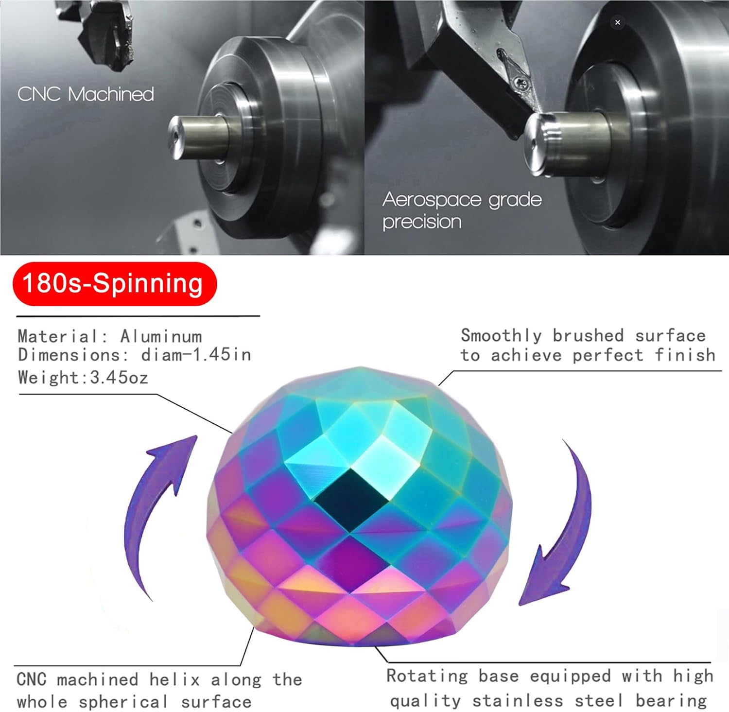 - 【Desk-Kinetic-Toys】1.48 in/0.16 lb, Spinning 180 seconds. Aluminum metal desk toy ball manufactured by CNC processing, small and exquisite.No batteries required & No tools required.