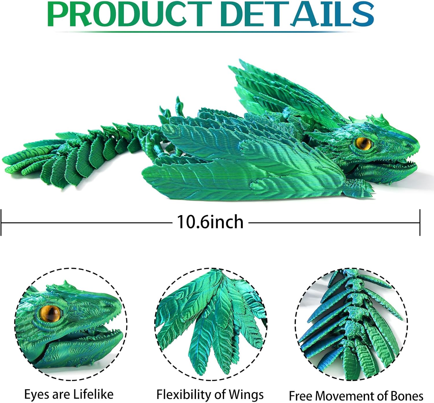 Feathered Wyvern Dragon,3D Printed Dragon with Wings,Articulated Dragon,Fidget Toy Surprise,Desktop Pet (Rainbow)