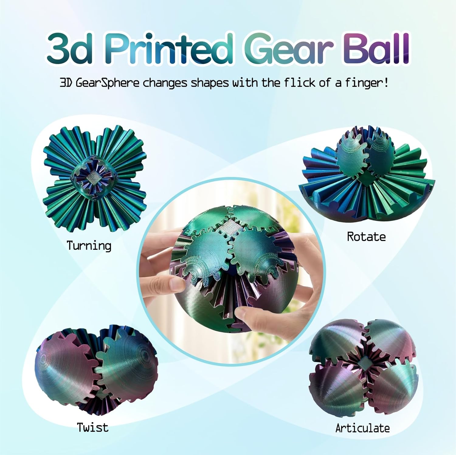 - 【Fascinating 3D Printed Gear Ball】This 3D printed gear ball spin ball is an innovative finger toy designed to provide stress relief and anxiety relief. The gear ball fidget toy stands out for its unique assembly design, which attracts your hands, mobilizes your mind, and eliminates stress with every satisfying turn.