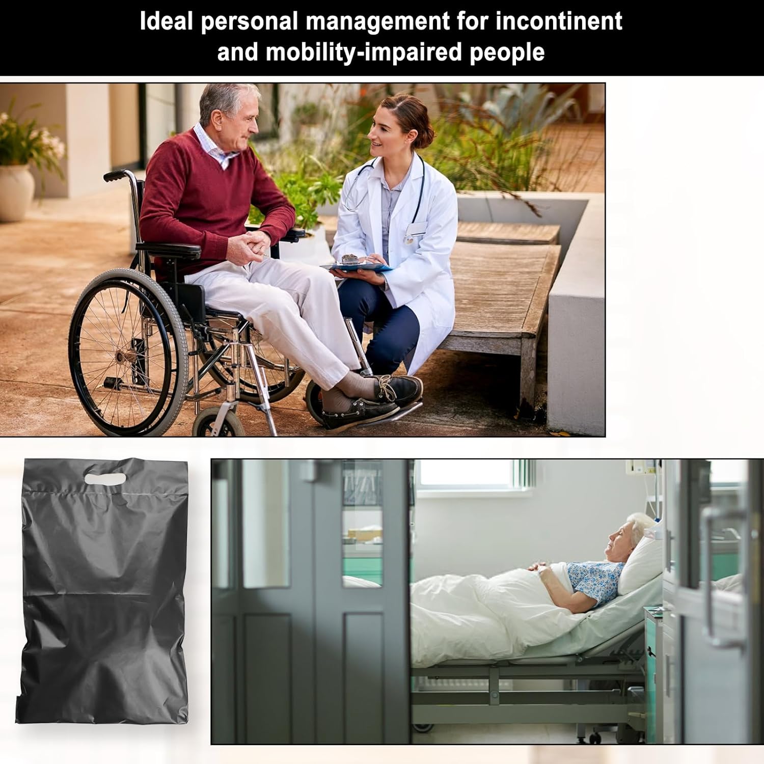 - 🚮Self-adhesive strip design -- disposal bags for adult diapers For people with limited mobility, the self-adhesive strip easily seals the opening of the bag so that others can no longer open the bag and can quickly seal in the smell.