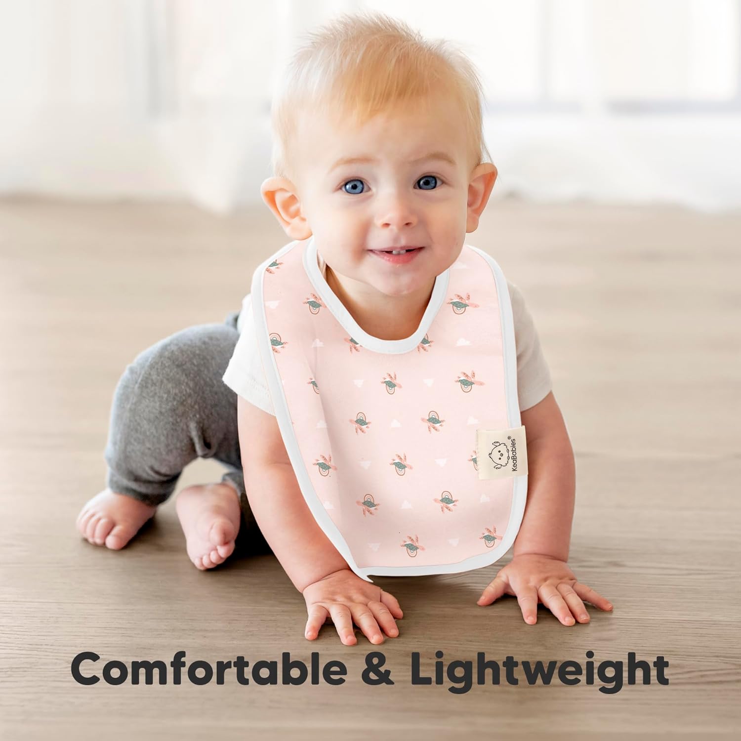 - 3 Adjustable Sizes With Soft Seams - With 2 sets of nickel-free snaps, you can adjust the girl and boy bibs according to your baby’s neckline. The soft-wrapped seams provide extra comfort for your baby while having the baby cloth bibs on.