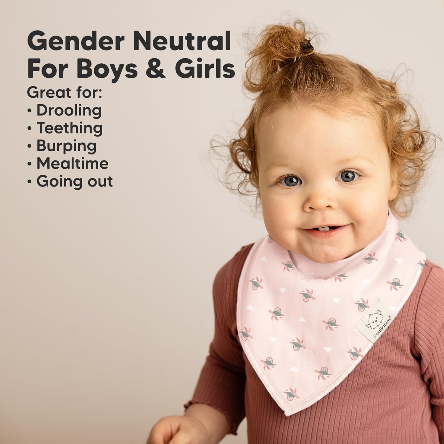 - 10-Pack Exclusively Designed Baby Bandana Bibs - Crafted with exclusive nifty prints on 100% organic cotton, double layered with plushy soft water resistant fleece, and put together with modernistic overlock stitching. The final product: functional baby bibs for girls and boys that instantly stands out. Every piece of KeaBabies Bandana Drool bib is handcrafted with quality materials and an extra dose of love. Its unisex colors are suitable for baby boys and girls.