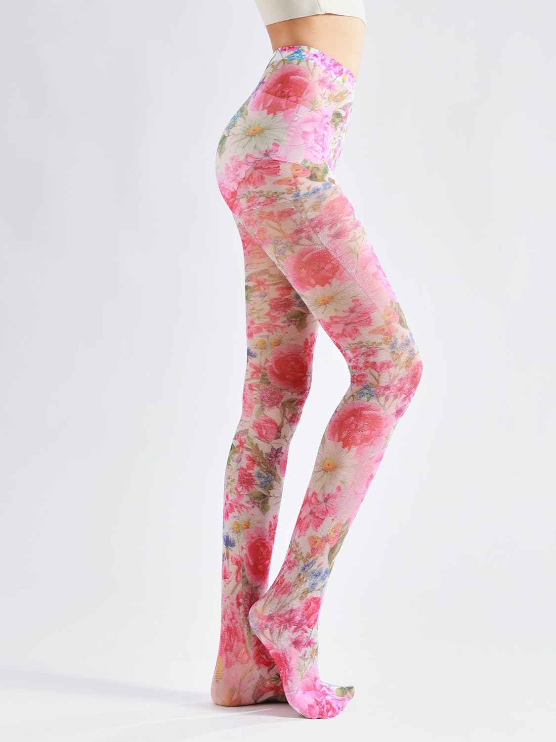 Sahabowi Women's Sheer Fashion Digital Print Fashions Stockings Metallic Silver Tights 1