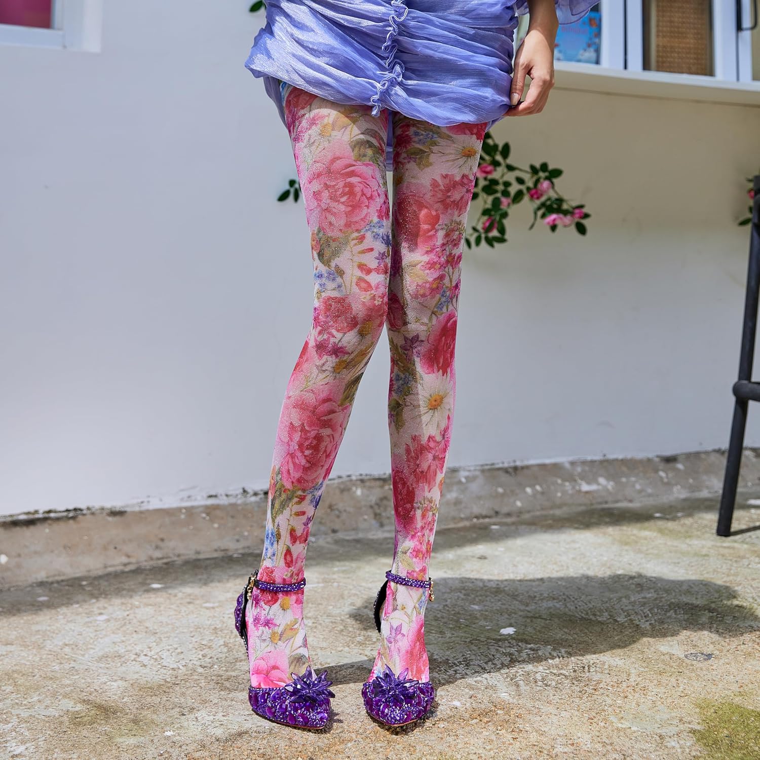 - 【Tall Waist Design, Shirink Tummy, Make You Look Great】80%Nylon15%spandex5%metallic silver, sparkly metallic material makes the pattern more clear and better, it shows you look more elegant and like a star. perfect proportion shrinks tummy with comfortable. A lightweight-knit tights slims tummy, hips and rear. SAHABOWI will make you look better. Unique design of velvet made tights more breathable.