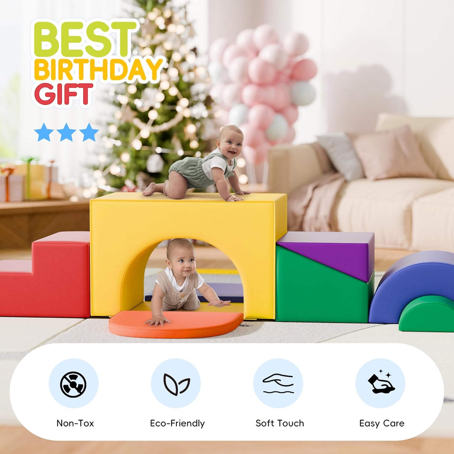 - 5-in-1 Soft Play Set:Bright blocks assemble into formations to climb, crawl and slide through, building motor skills.The tunnel & incline mat add even more fun. Play motivates movement exploration