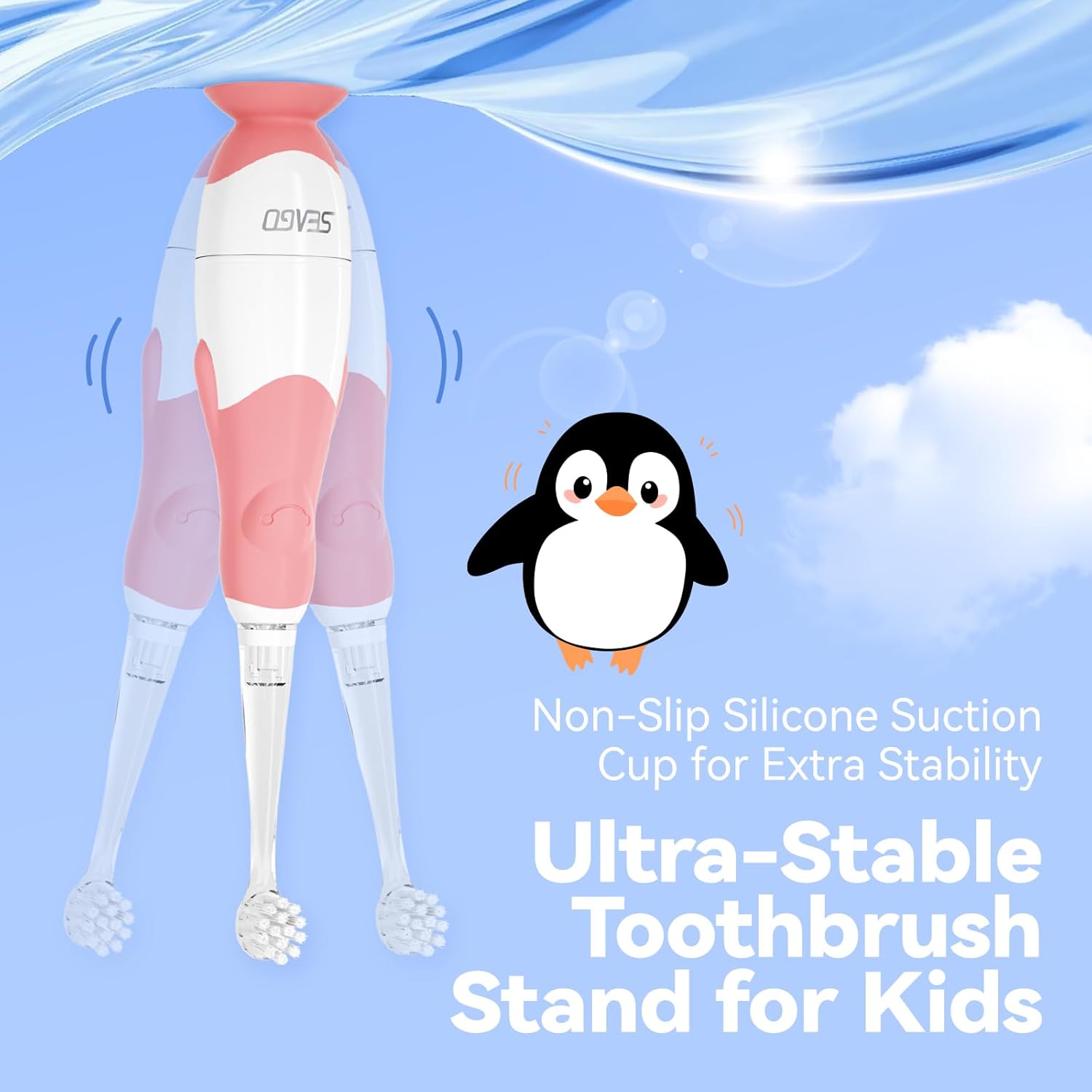 - [Cute Design] Designed with an adorable penguin shape, this toothbrush is available in both pink and blue, making brushing fun and appealing for both boys and girls
