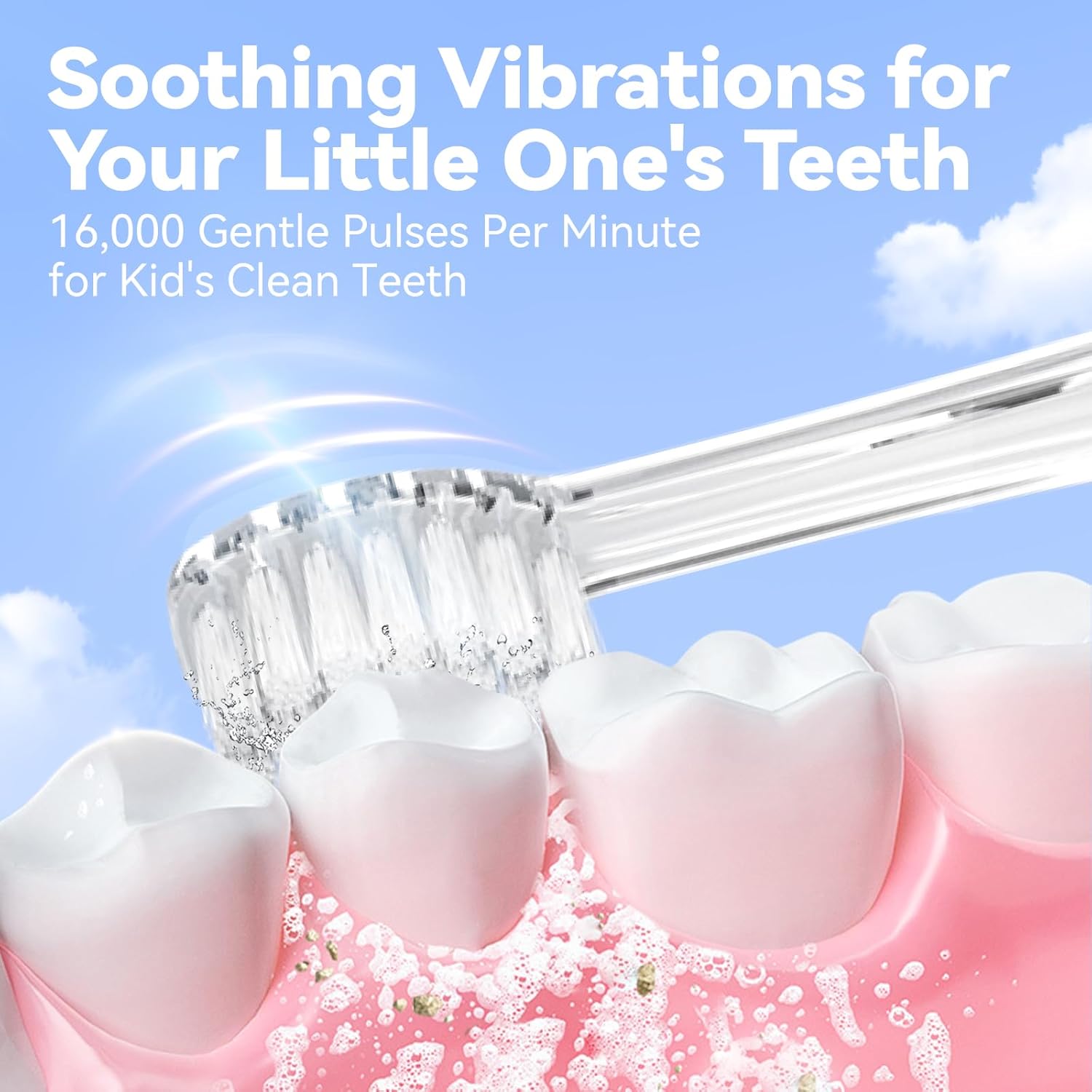 - [Gentle Vibration] With 17,000 vibrations per minute, this toothbrush removes over 100% more plaque than a traditional toothbrush, providing a deep clean that promotes healthy teeth and gums for your toddler. The soft, child-friendly bristles are gentle yet effective, ensuring a comfortable brushing experience