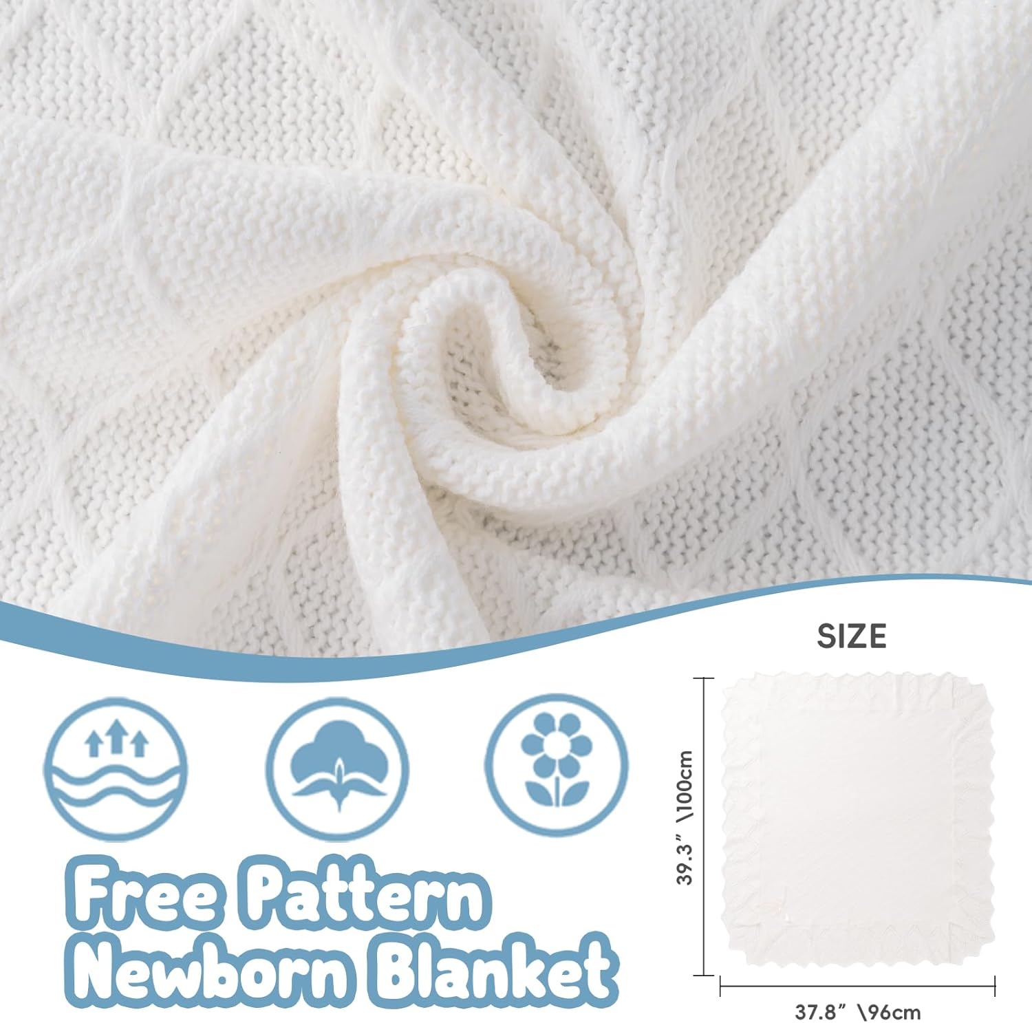 - 【GOOD QUALITY】Our white baby blanket made from soft cotton and polyester fabric,skin-friendly and comfortable. Our knit baby blanket is quick-drying and machine washable and tumble dried on low, the more you wash the softer it becomes.The cotton baby blanket suitable for all seasons, durable, and a good baptism gifts for boys and girls,and also the baby essentials for newborn girls & boys