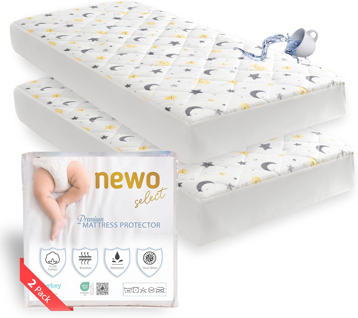 - 1st CLASS MATERIAL and SOFT COTTON: The Newo crib mattress protector OEKO-TEX Certified is made of good water-resistance (TPU) and comfortable touch super soft cotton surface. The premium 4-layer design crib mattress cover is made of high-quality thick filling for extra softness and breathability, and prolongs the life of your crib mattress. 2 Pack