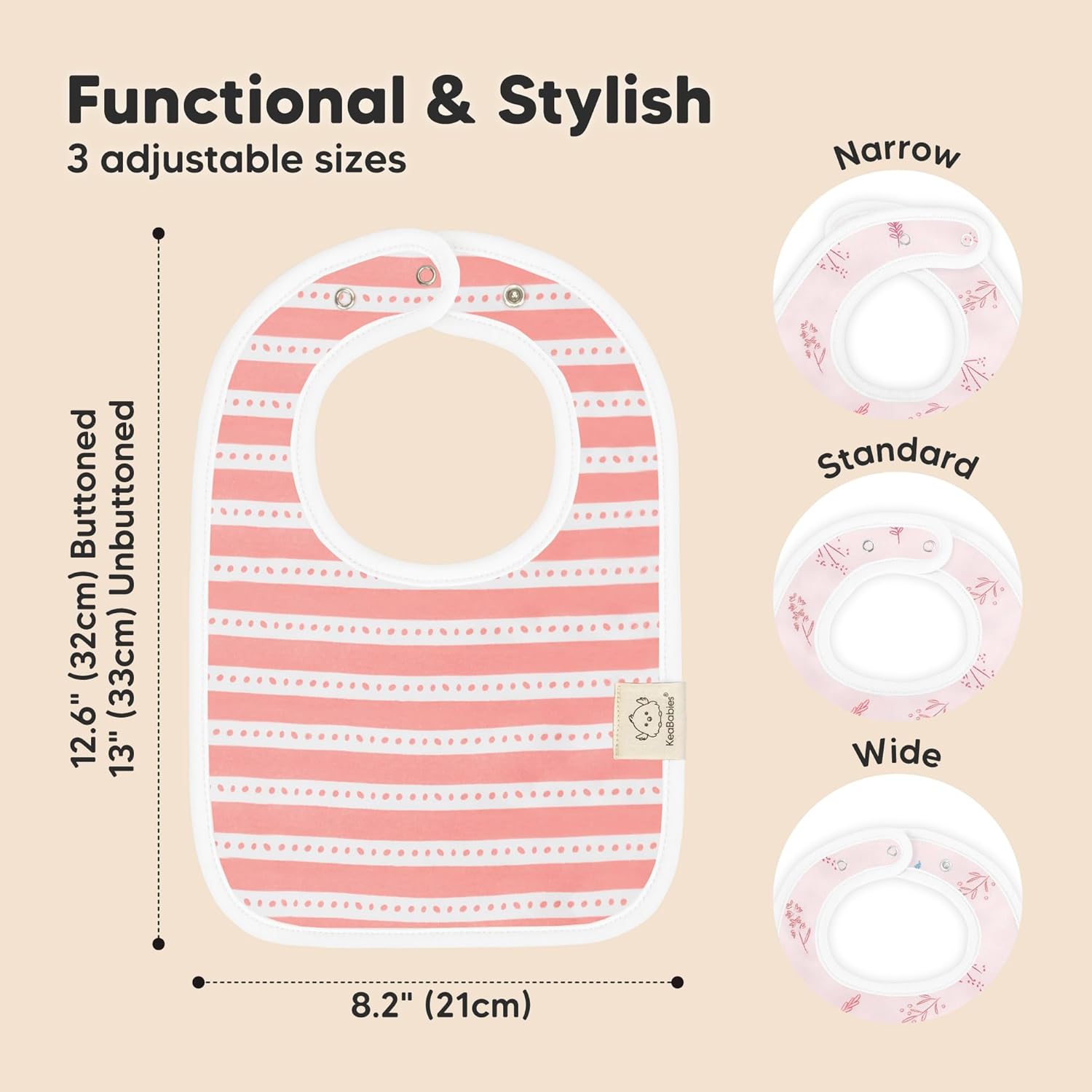 - 3 Adjustable Sizes With Soft Seams - With 2 sets of nickel-free snaps, you can adjust the girl and boy bibs according to your baby’s neckline. The soft-wrapped seams provide extra comfort for your baby while having the baby cloth bibs on.