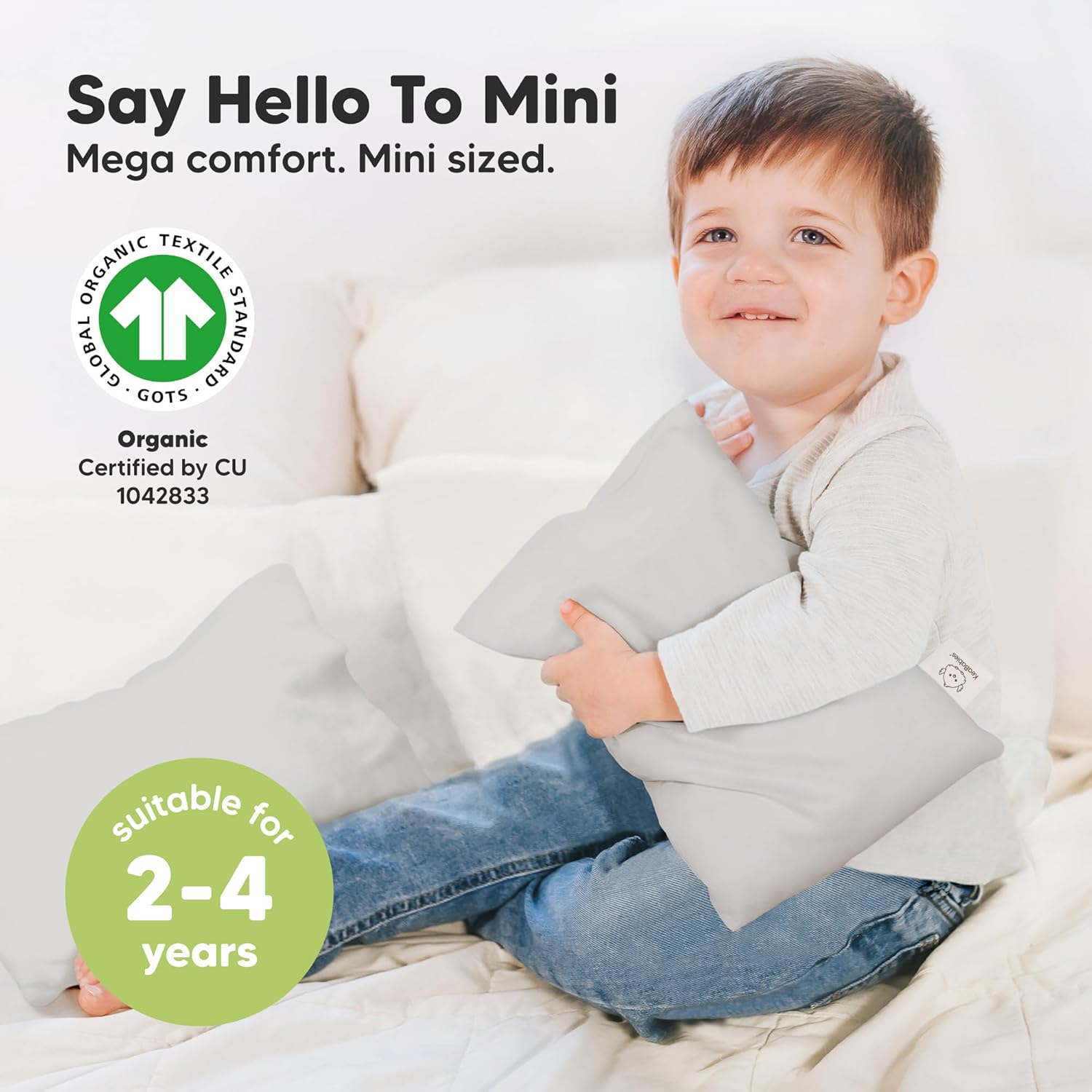 Mini Toddler Pillow with Pillowcase - 9x13 My Little Dreamy Travel Kids Pillow for Sleeping, Toddler Bed, Small, Tiny, Organic Cotton Pillowcase, Soft & Breathable, Kids 2-4 Years Old (French Gray)