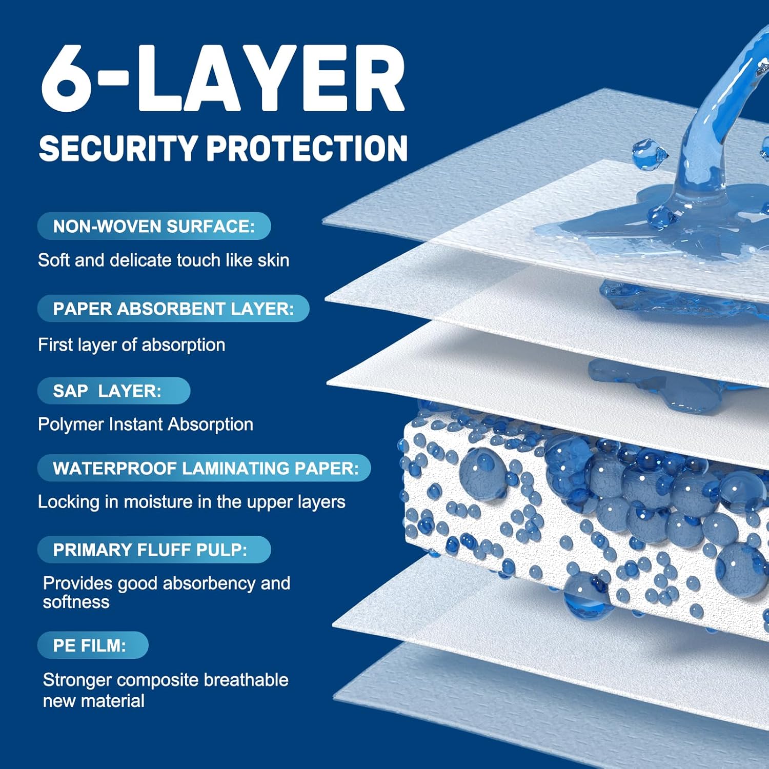 - 【Portable and Durable】: Design for Durability and Tear Resistance. Our disposable pads will not bunch, swell or split after absorbing up to 1500ml of liquid. Overnight Protection, sleep peacefully.