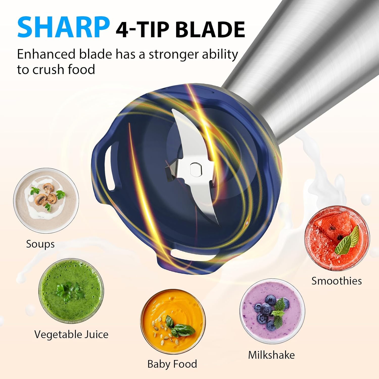 - Protect Your Cookware From Scratches: We know your cookware are expensive, so we understand how you feel and want to protect your cookware. This HB-8803 hand blender has an upgraded food-grade blade guard to protect your pots and pans from scratches. The unique anti-splash guard prevents splashing to keep you clothes and your kitchen spotless.