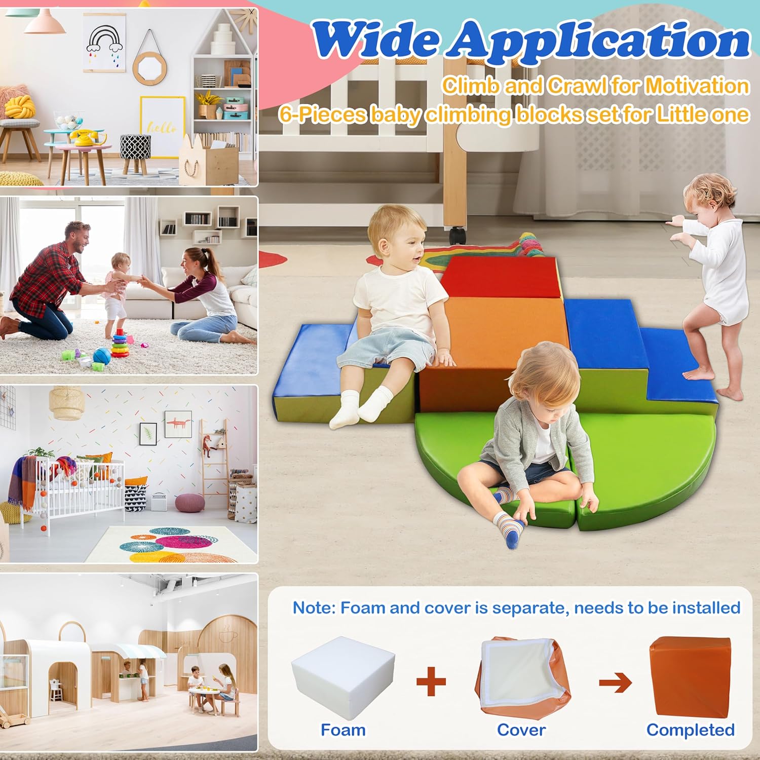6-Piece Baby Soft Foam Climbing Blocks Set, PU Leather Non Slip Foam Play Gym Climbing Structures for Toddlers 3, Indoor Climb and Crawl Activity Play Set