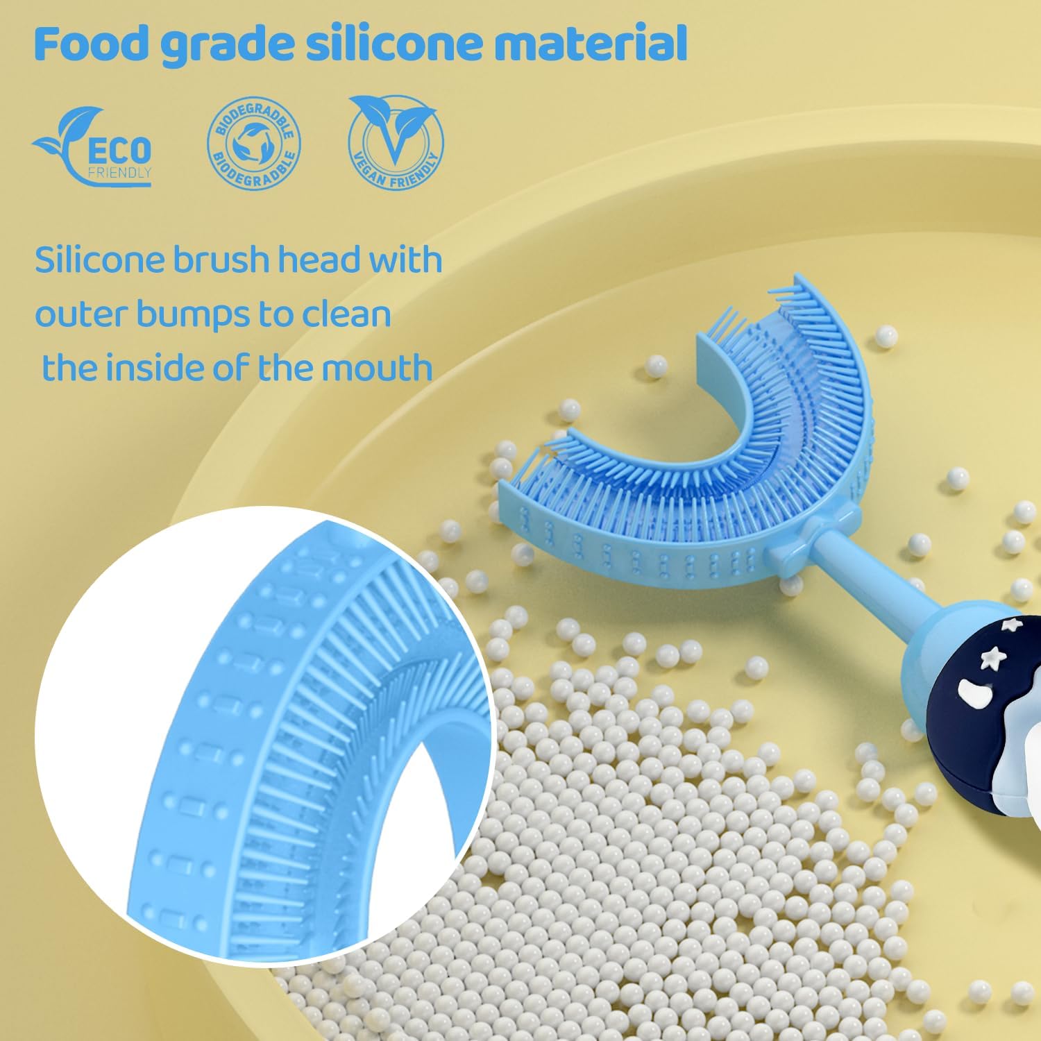 - 【Triple Side & All Clean】 This U-shaped kids toothbrush features a three-sided design, helping your little one clean their teeth and gums 360° in all directions. Ideal for ensuring a thorough clean, this toddler toothbrush is perfect for complete oral hygiene.